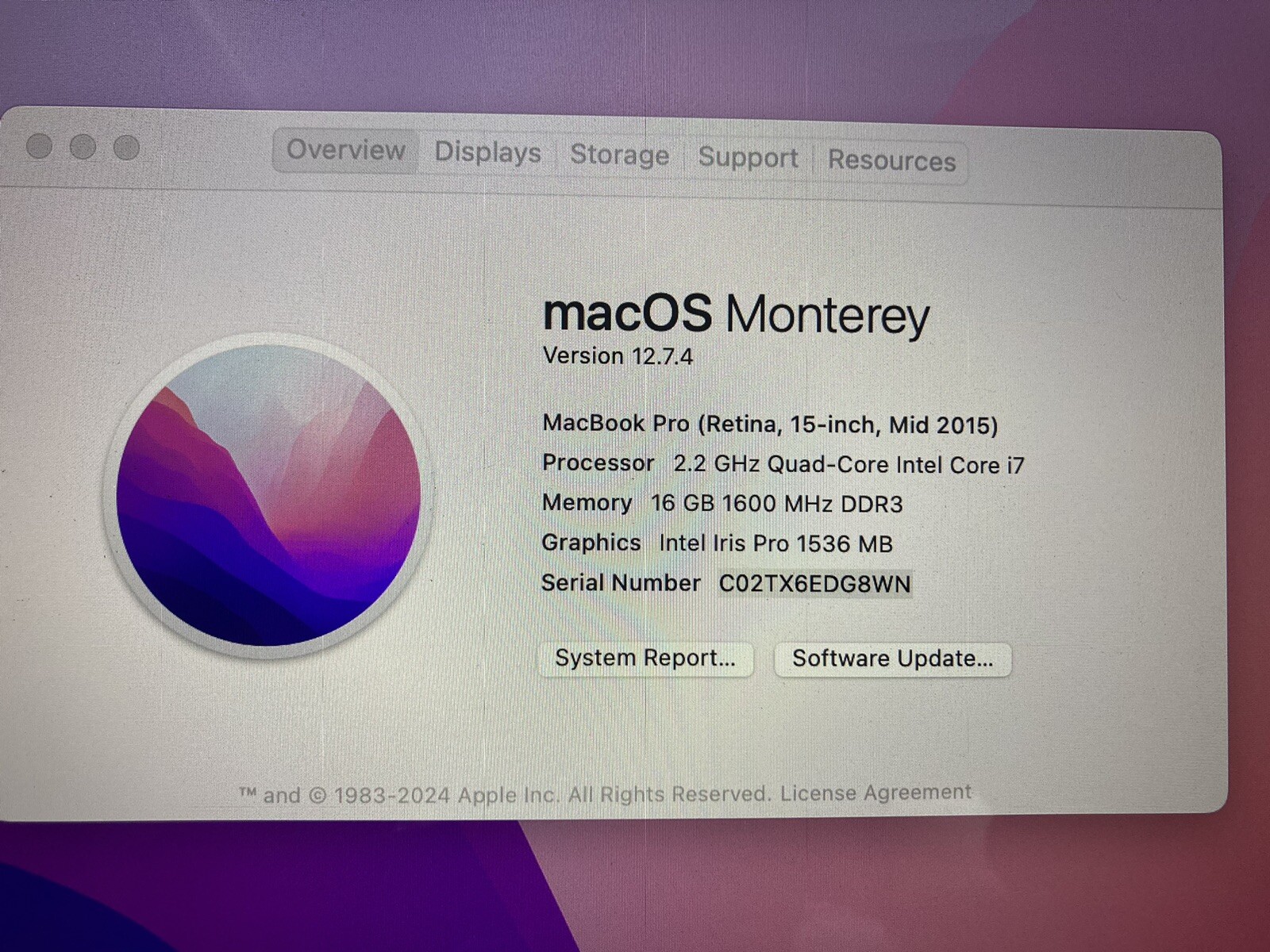 Операционная система: macOS 12.0, Monterey