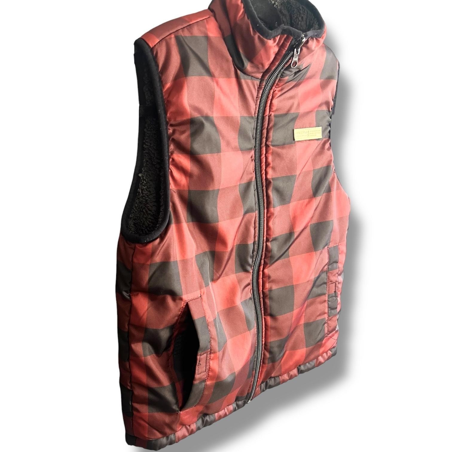 Buffalo David Bitton Vest Boys Medium 10/12 Red Black Plaid Reversible Sherpa
