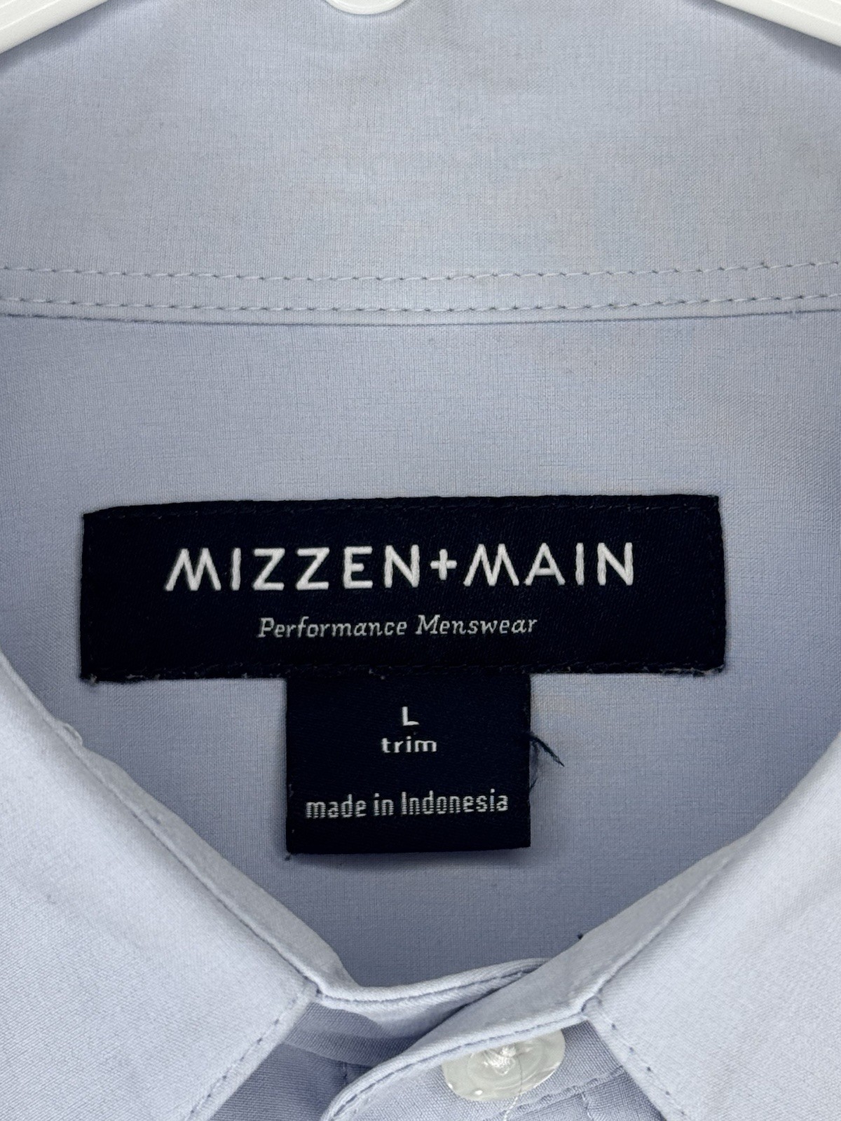 как выглядит Mizzen Main Shirt Mens Large Trim Fit Performance Flex Dress Button Blue фото