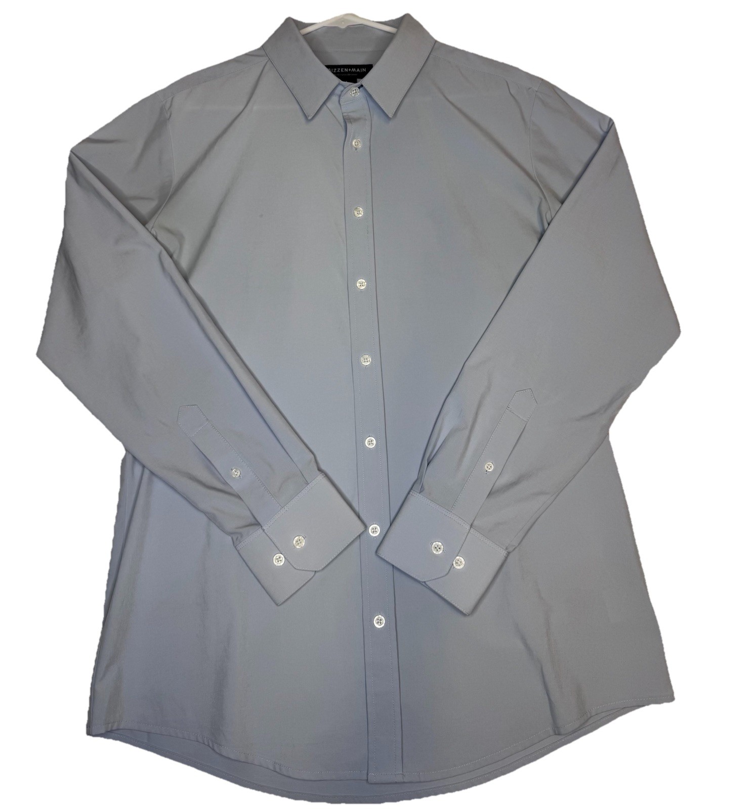 Mizzen Main Shirt Mens Large Trim Fit Performance Flex Dress Button Blue