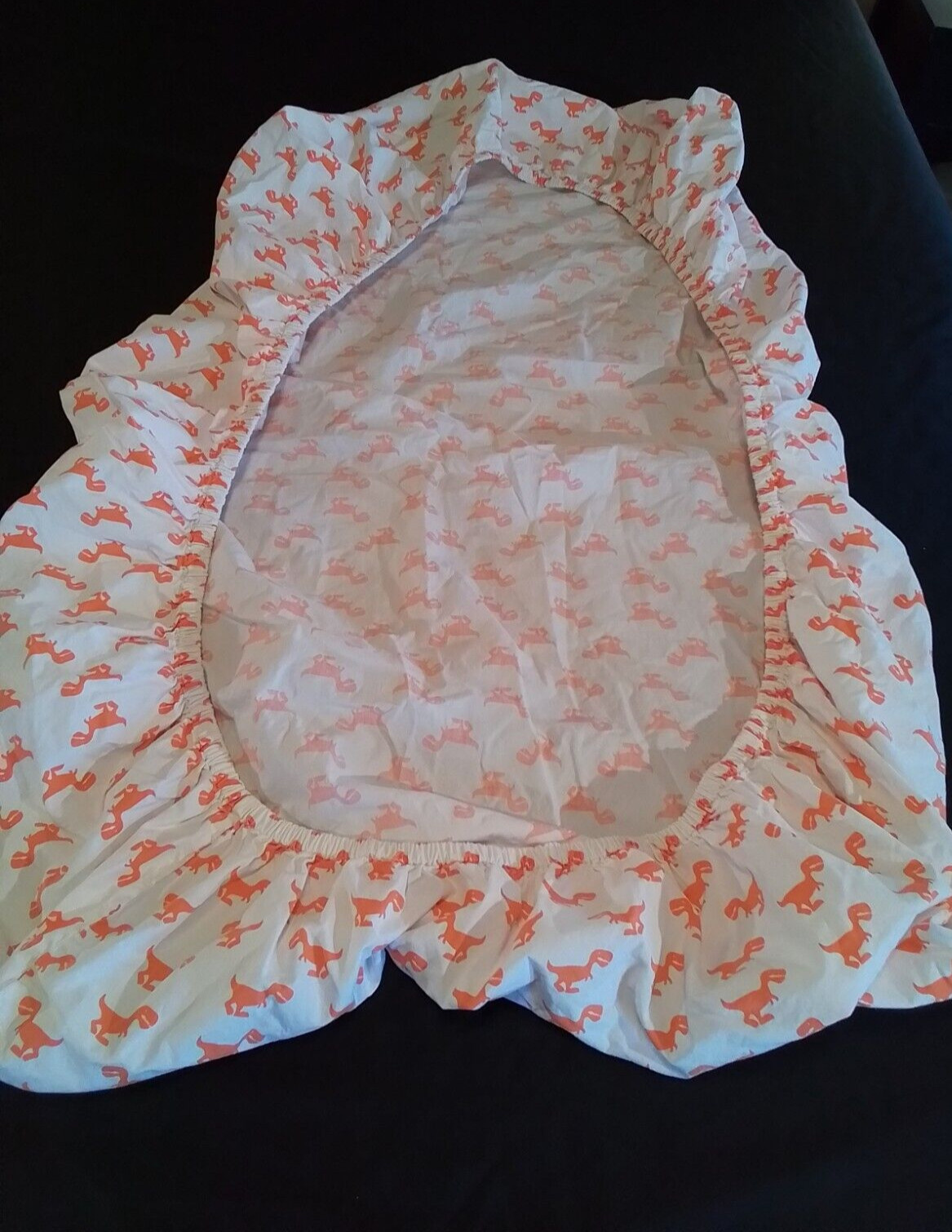The Land Of Nod Orange Dinosaur Fitted Crib Toddler Fitted Sheet White Cotton