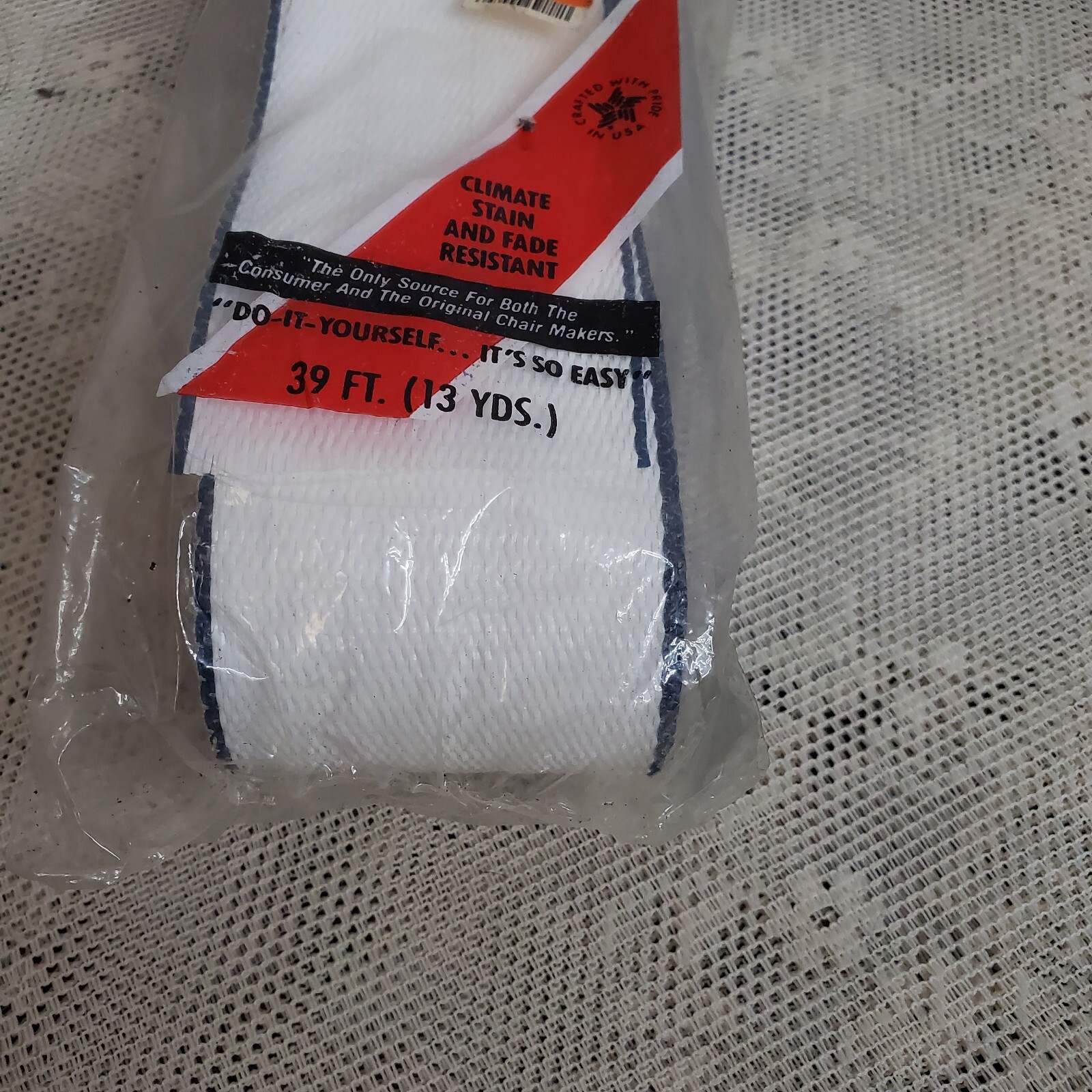 Vintage Re-Web Kit Lawn Chair Webbing 39 Feet White W Dark Blue Trim New Sealed