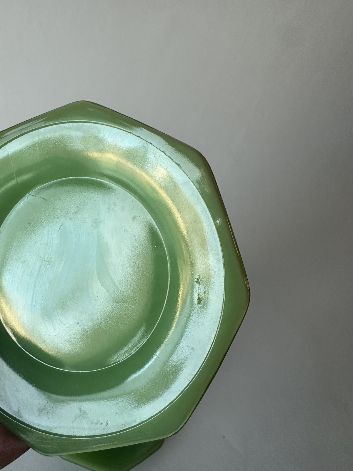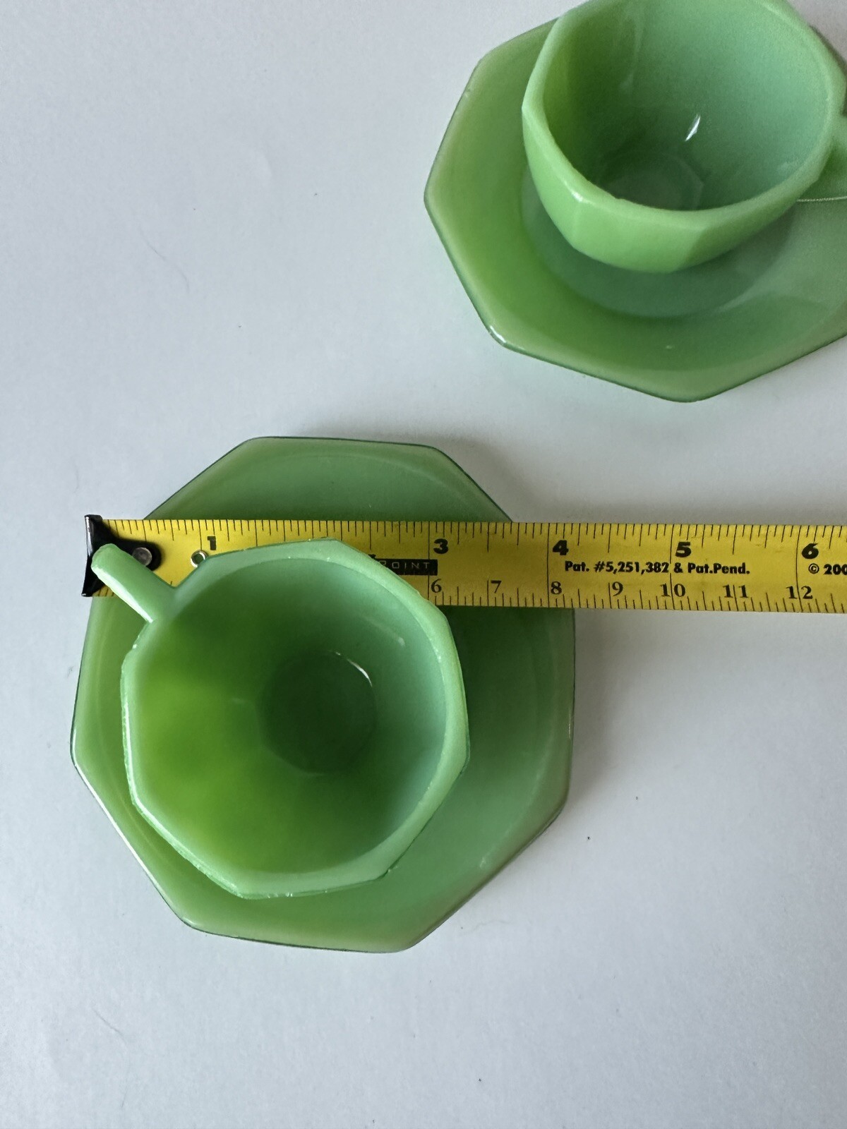 как выглядит Vintage Akro Agate Childs 2 Sets-Cups Saucers Jadite Green Slag Octagon фото