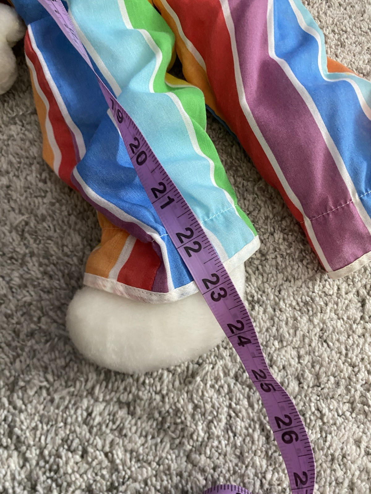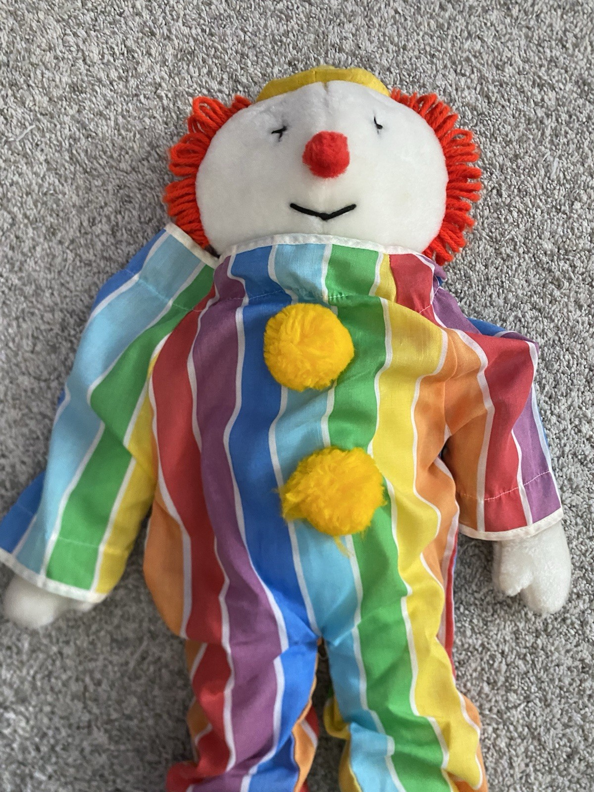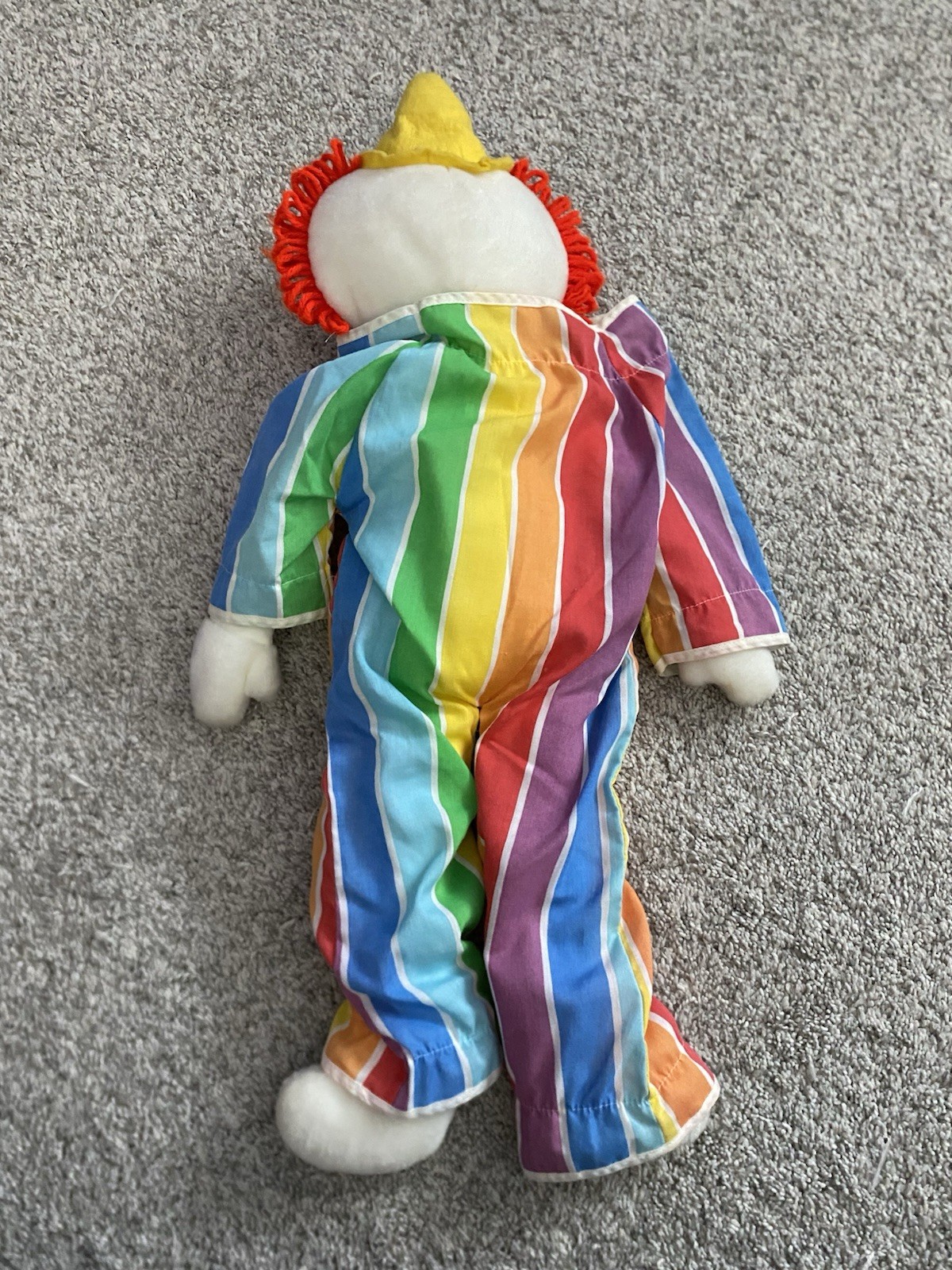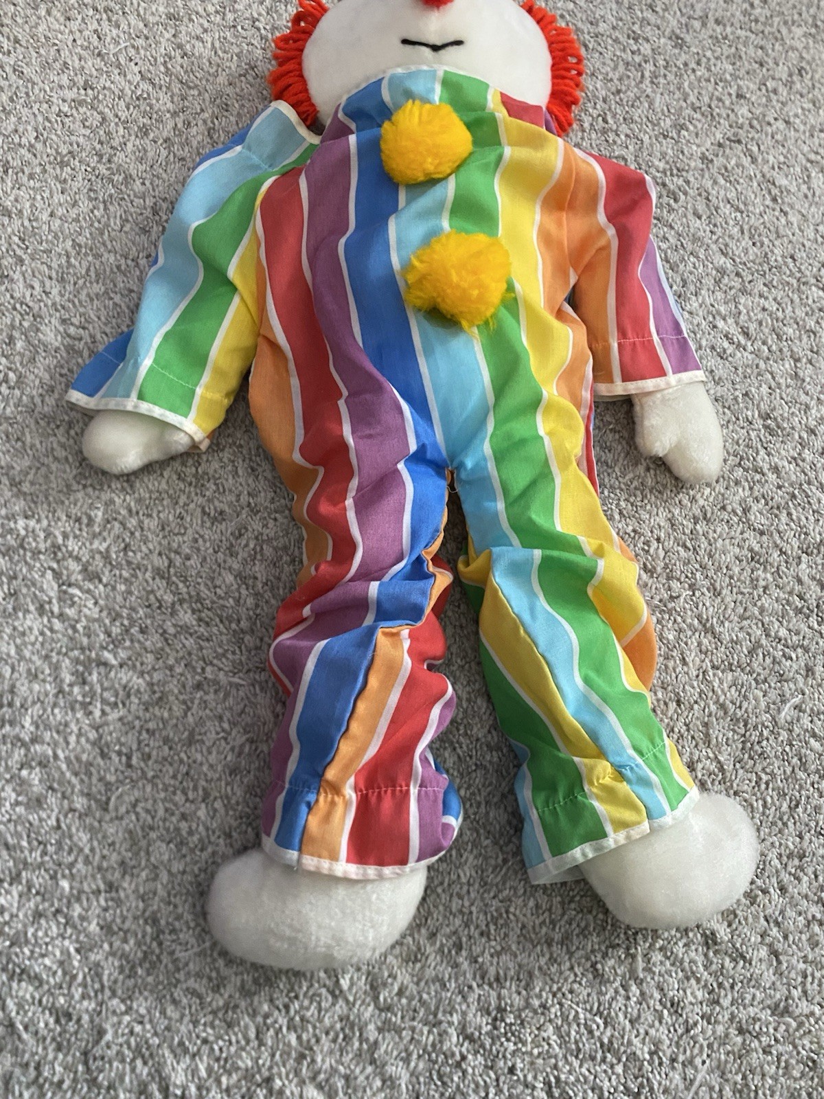 как выглядит Vtg 1984 Eden Toys Obo The Clown 24 Plush Striped Outfit Red Yarn Hair RARE фото