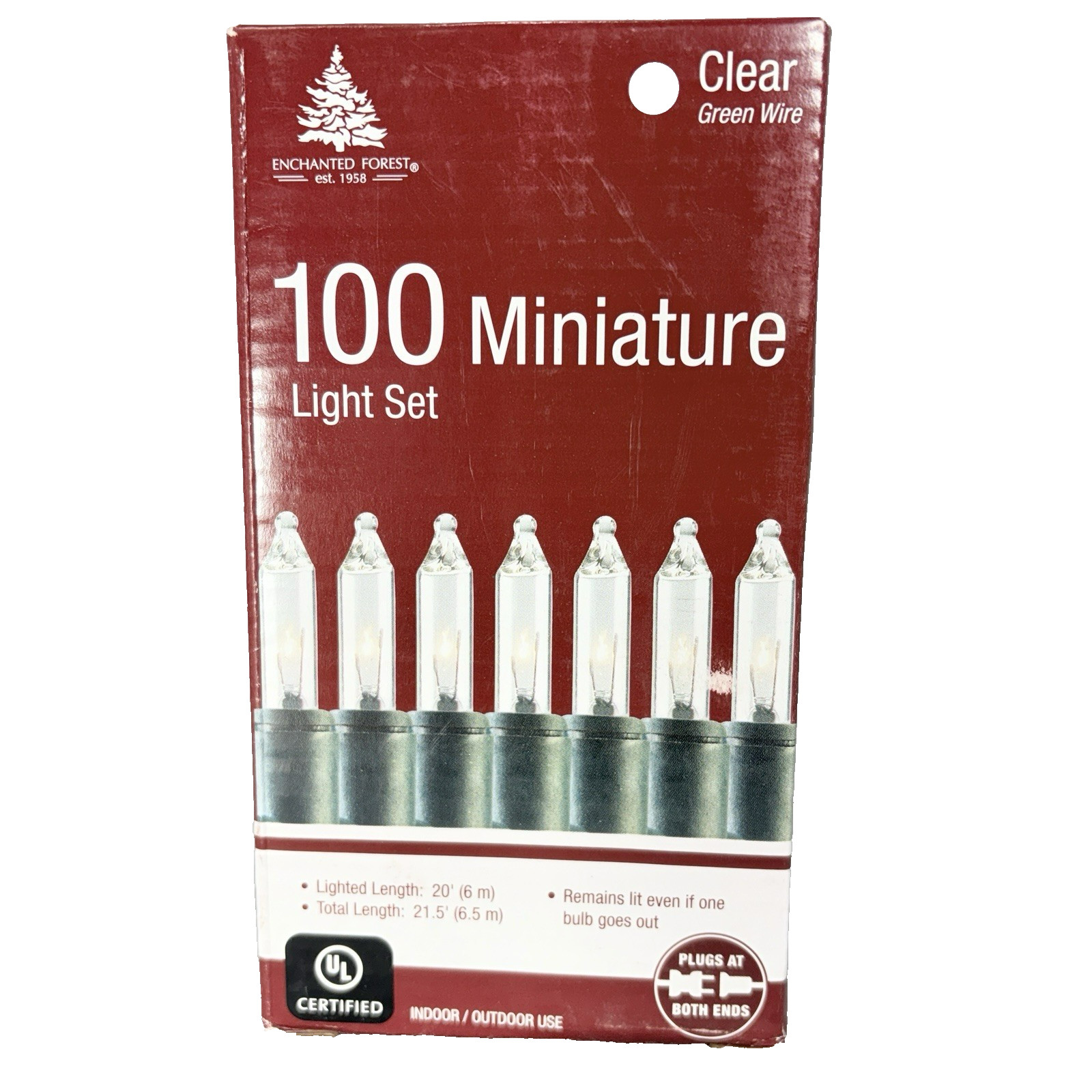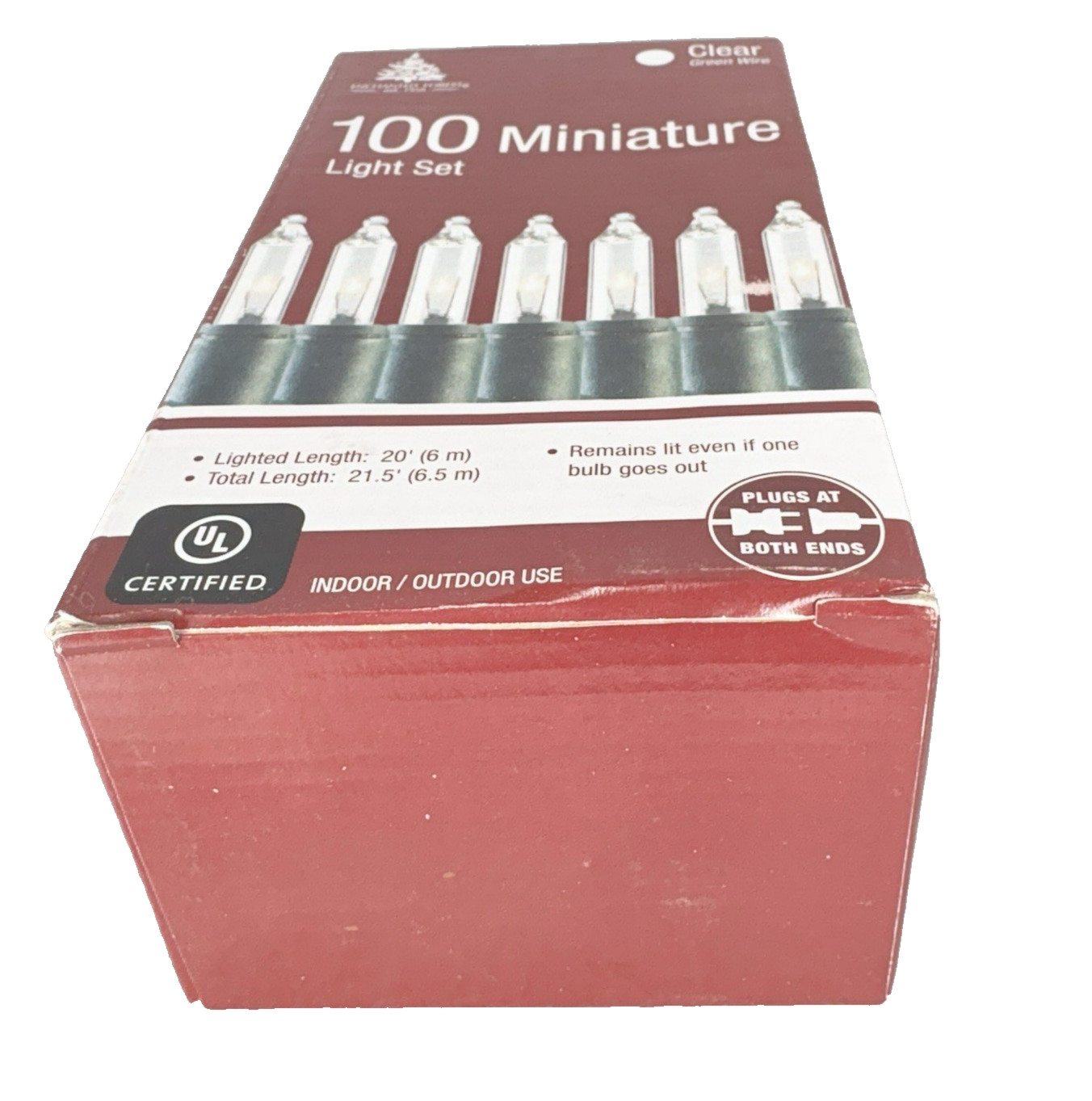 Clear White Mini 100 Count Light String GREEN Wire Christmas Incandescent 20' T5