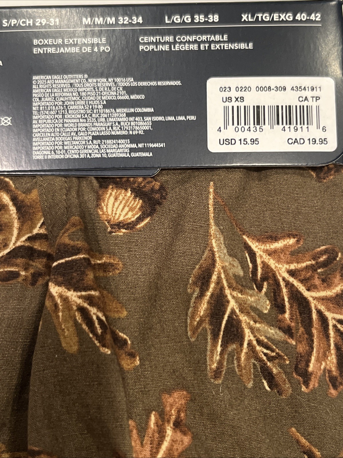 NWT AMERICAN EAGLE 4 Stretch Boxer Sz XS-S-L-XL Brown Leaves 14