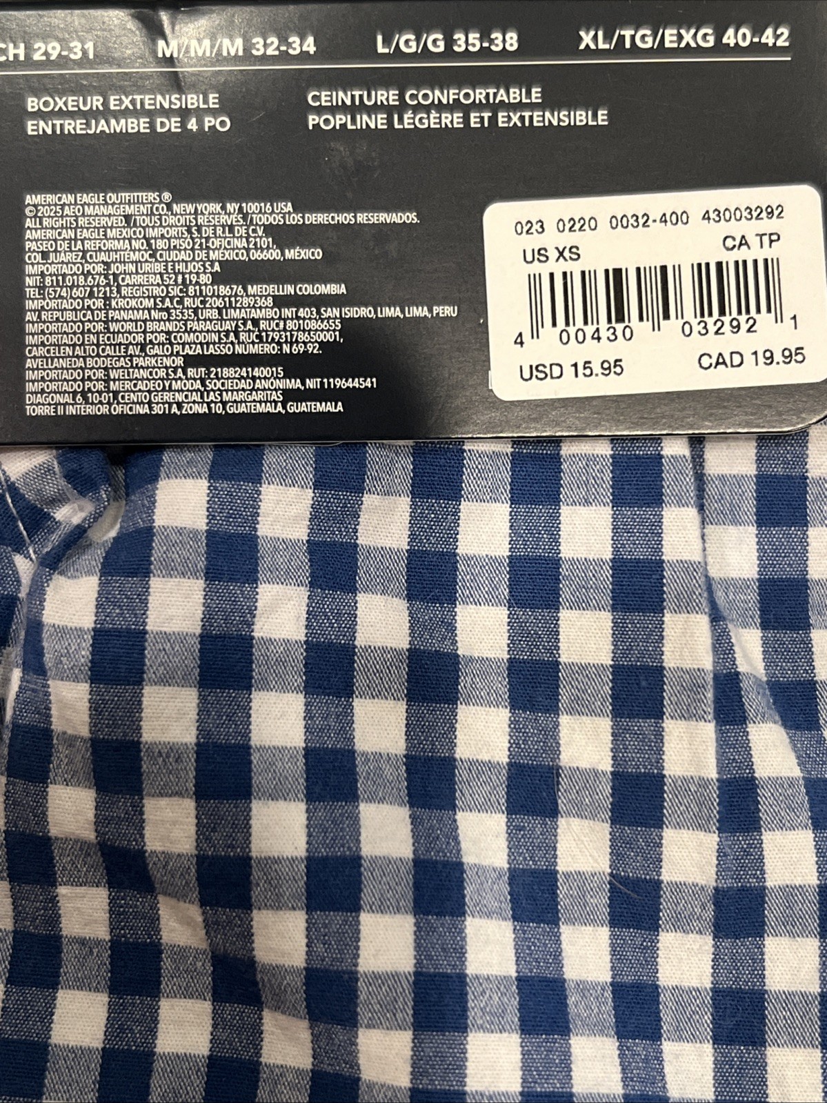 как выглядит NWT AMERICAN EAGLE 4" Stretch Boxer Sz XS-S-M-XL Blue White Checks 69 фото