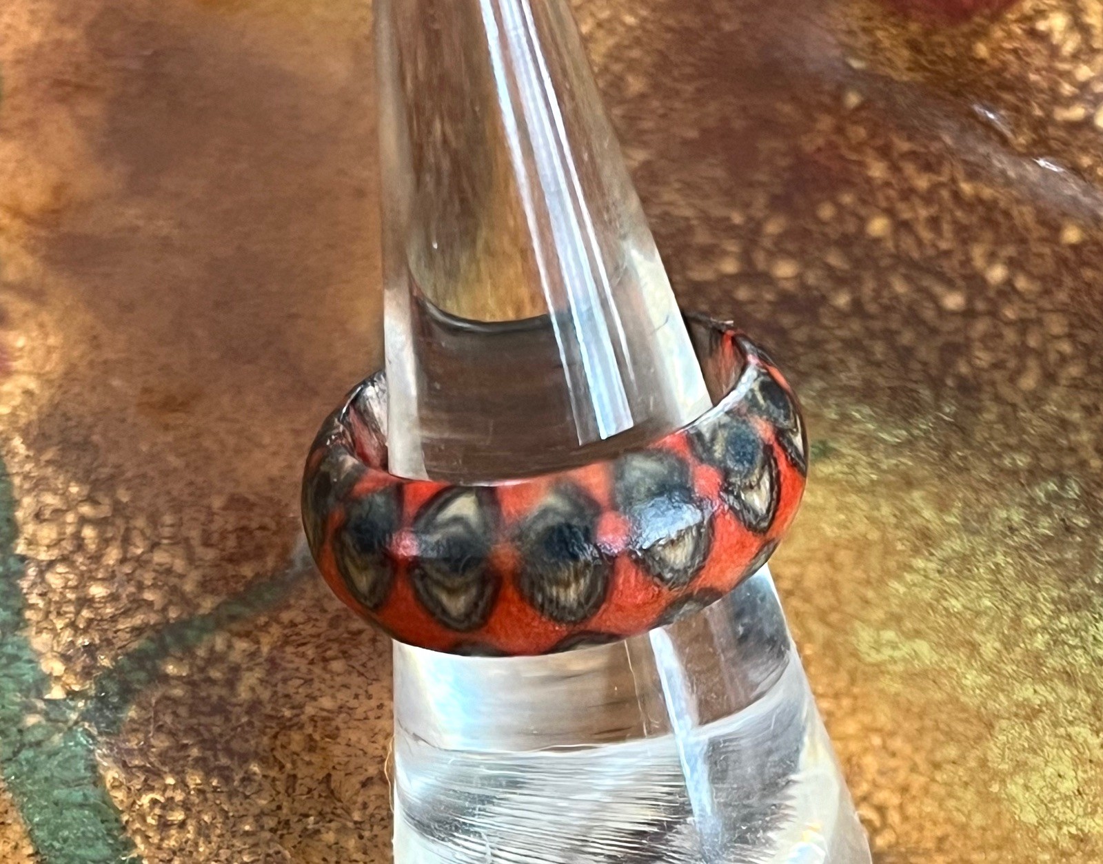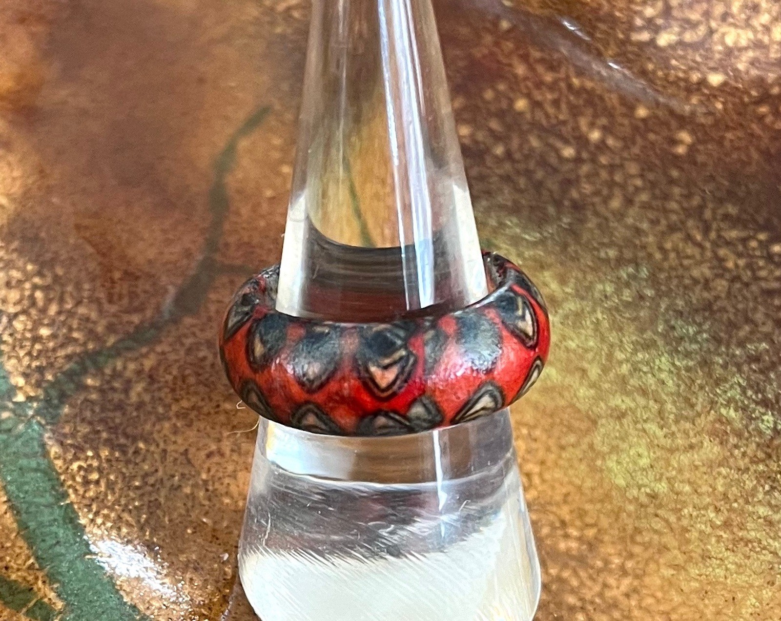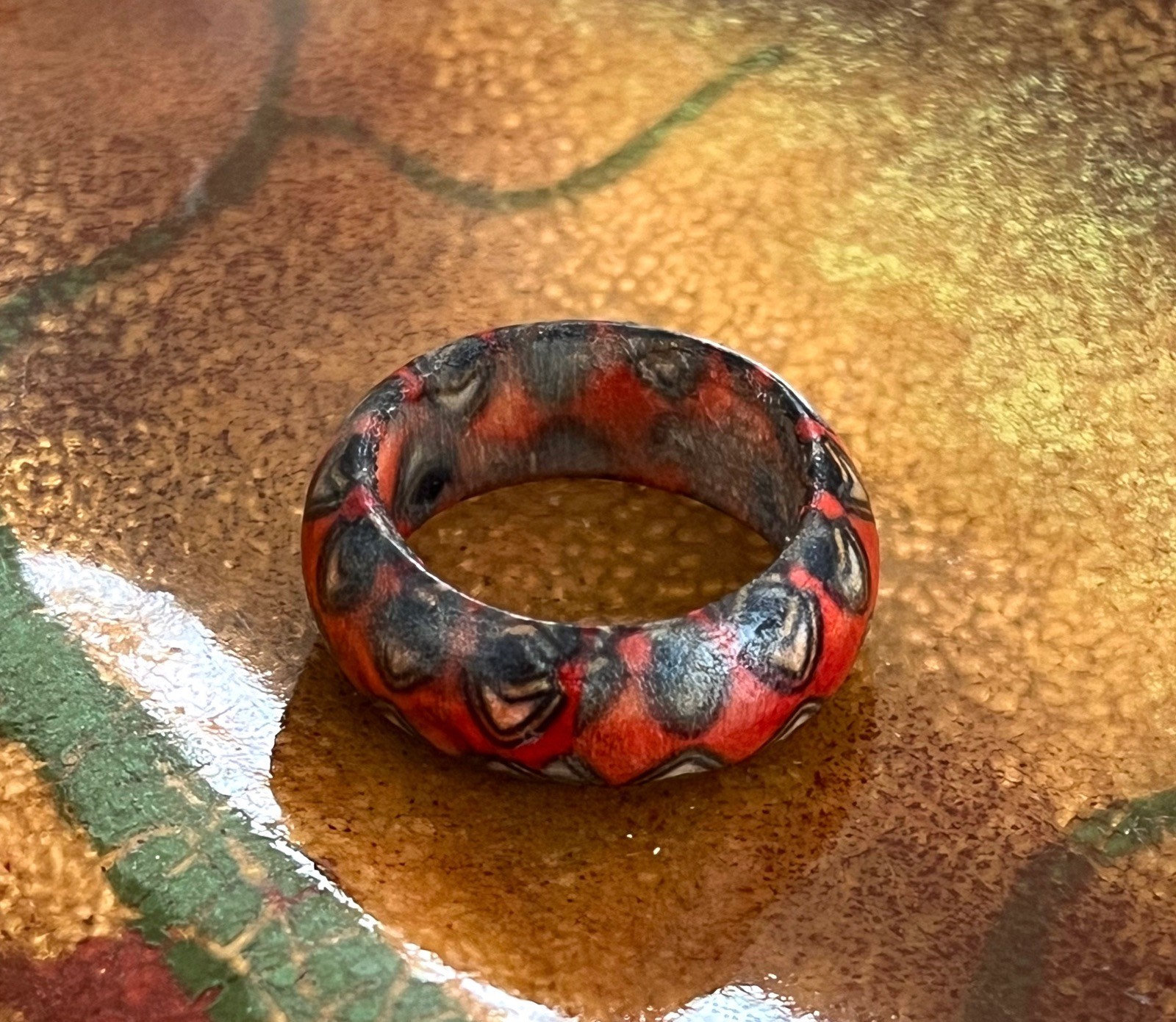 Art Pattern Handcrafted Domed Wood Ring Band. 8mm Wide, Size 8.75 New Unused q