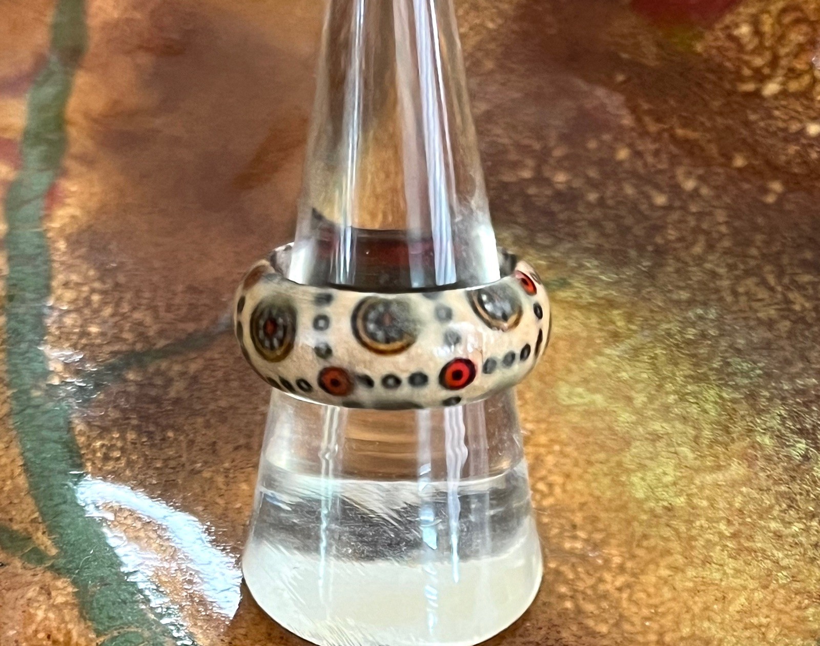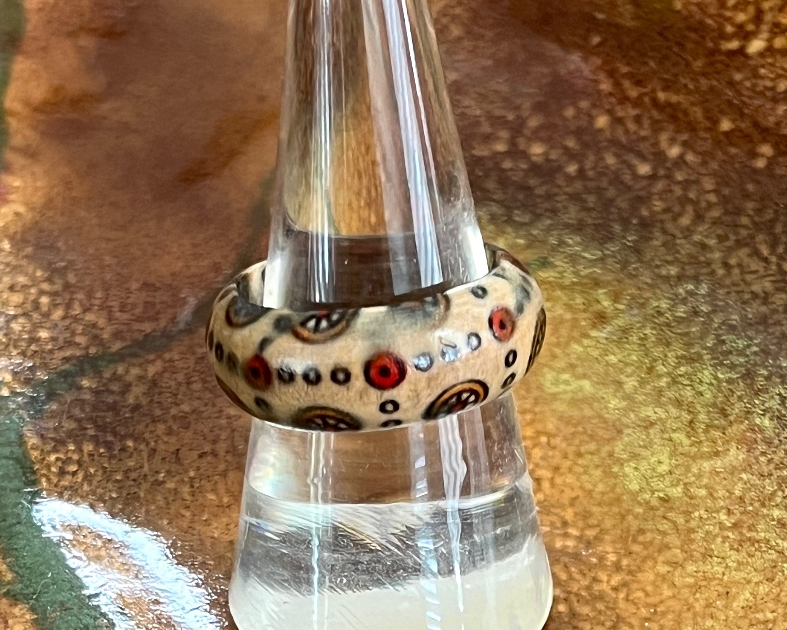 Art Pattern Handcrafted Domed Wood Ring Band. 8mm Wide, Size 8.75 New Unused c