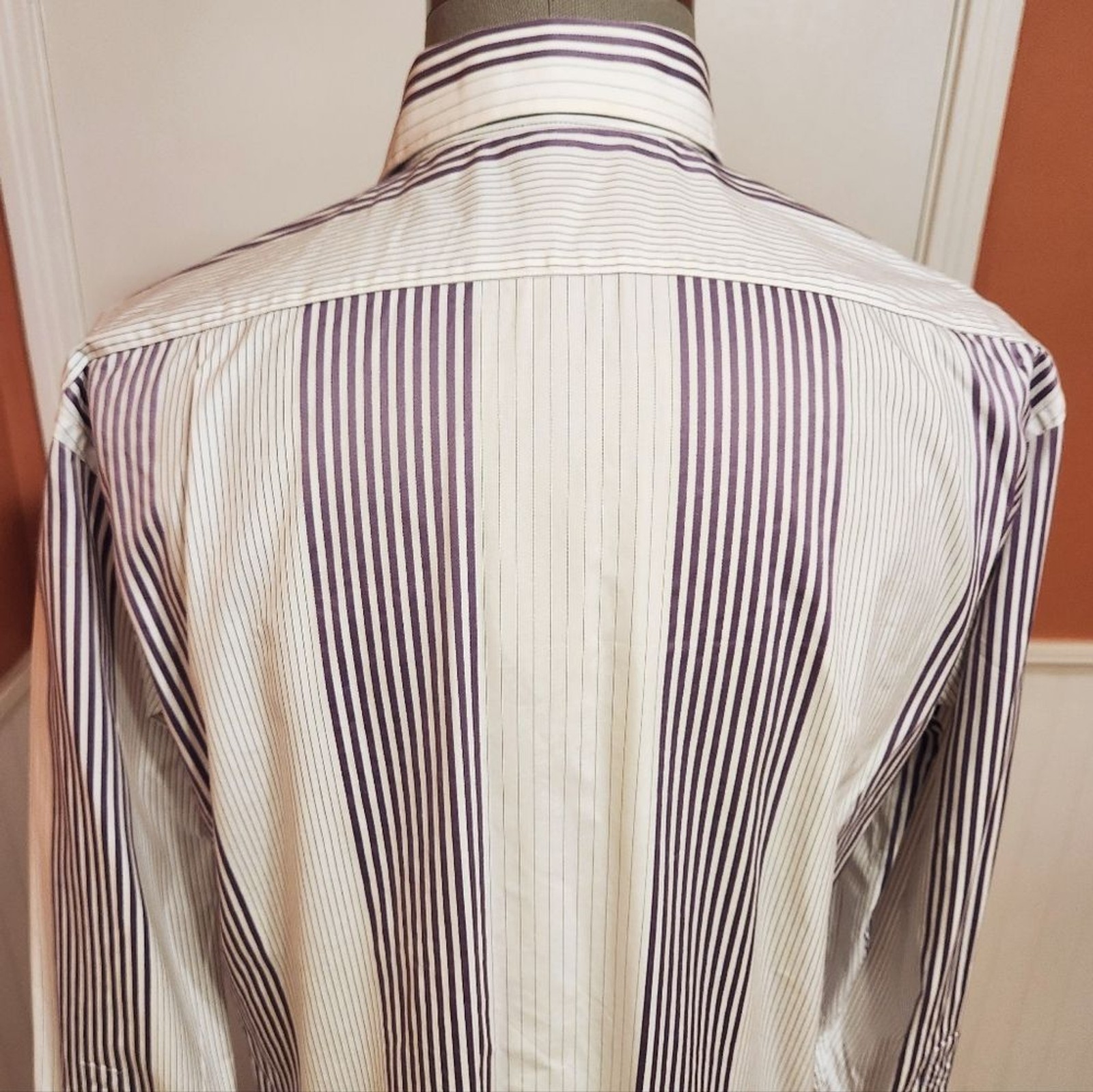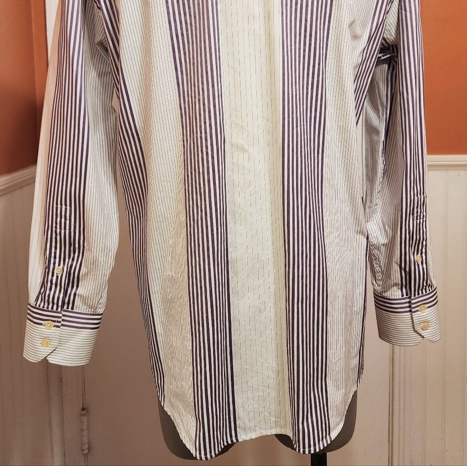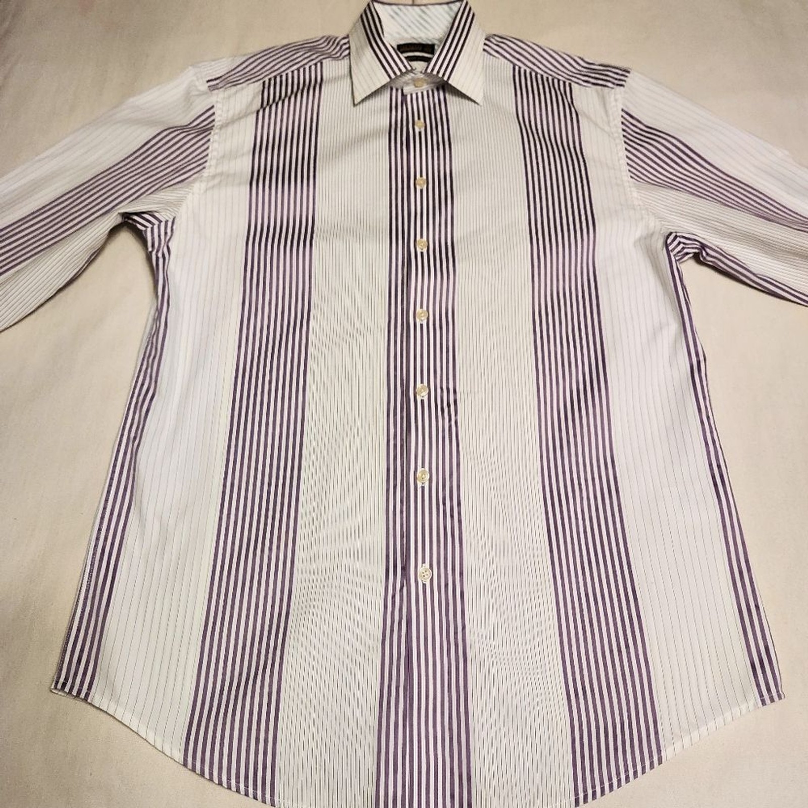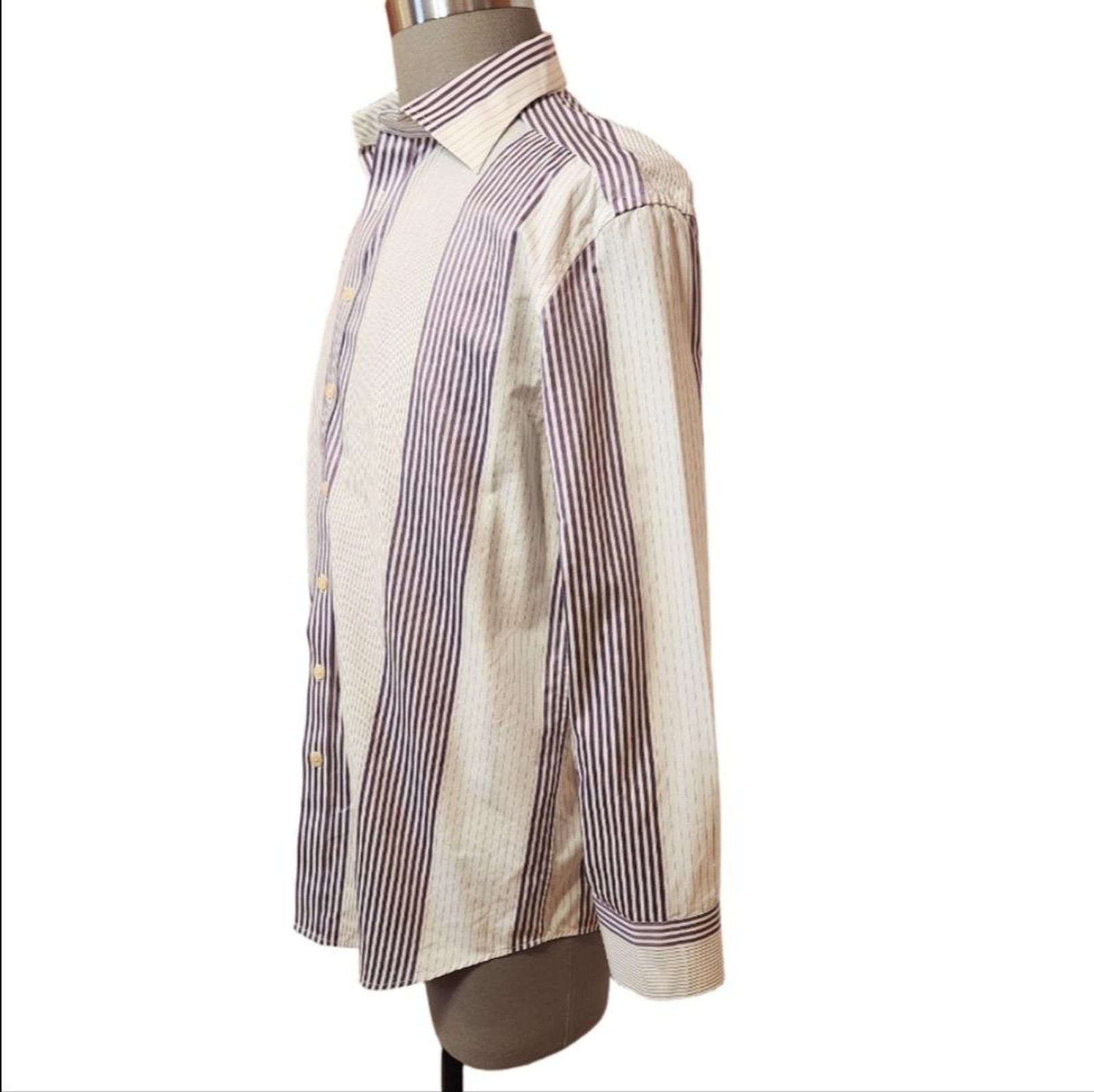 как выглядит Ted Baker Endurance Vertical Stripe Button Front Mens Dress Shirt White/Purple фото