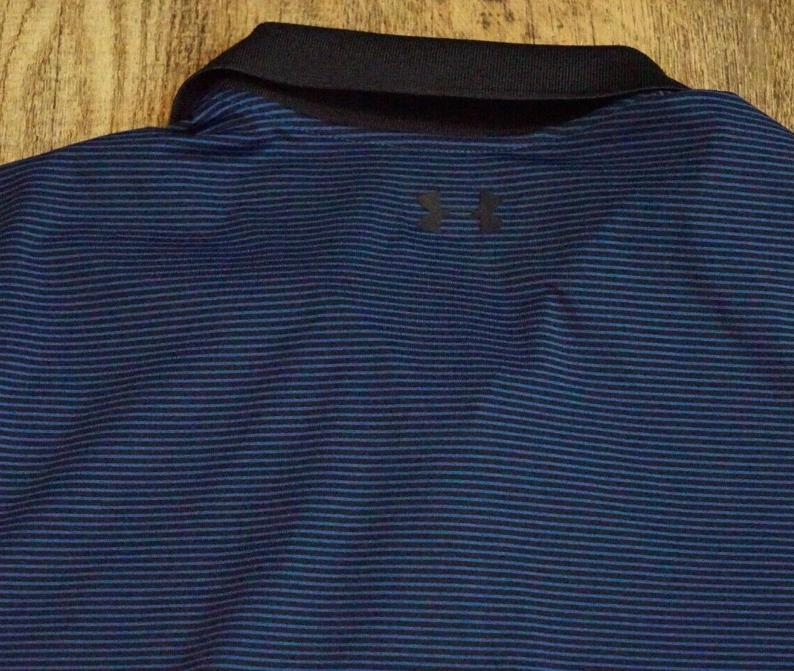 как выглядит Under Armour HeatGear Shirt Mens 2XL Blue Striped Polo Short Sleeve Button фото