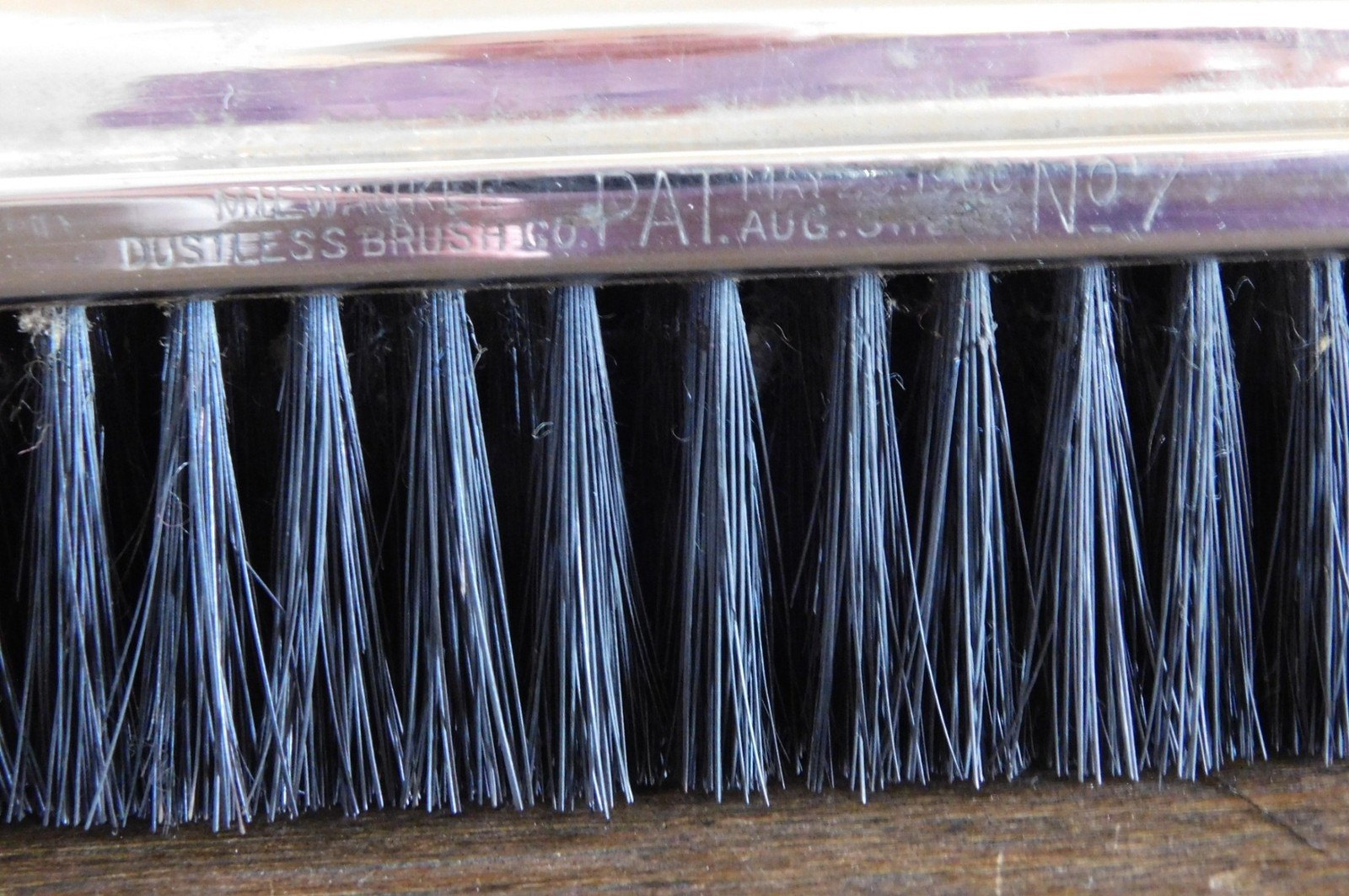 как выглядит Milwaukee Dustless Brush Co. Silver Tone Clothes Brush PAT. AUG 3, 1909 No. 7 фото