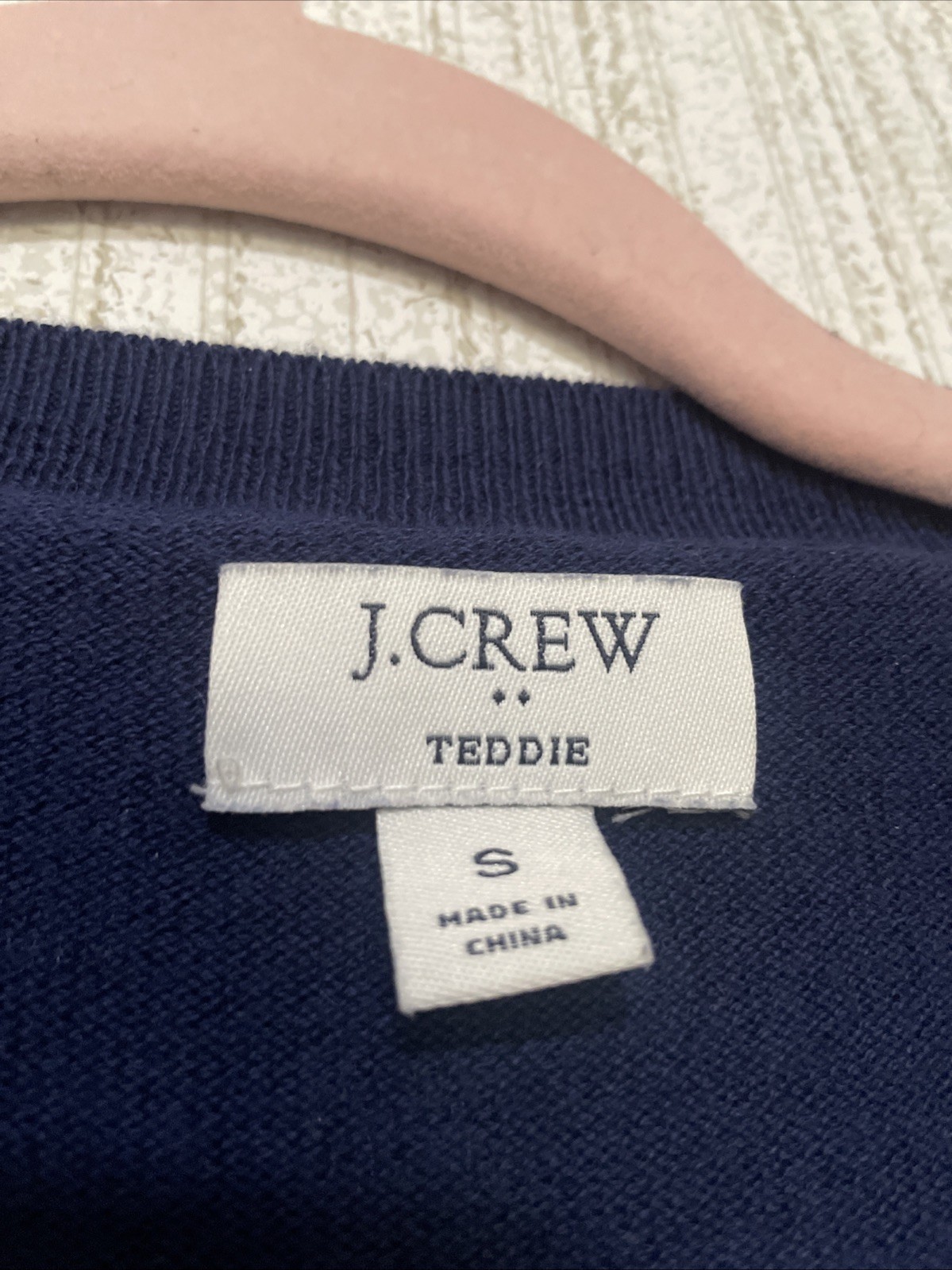 J. Crew Size Small Teddie Sweater Blue With Apples