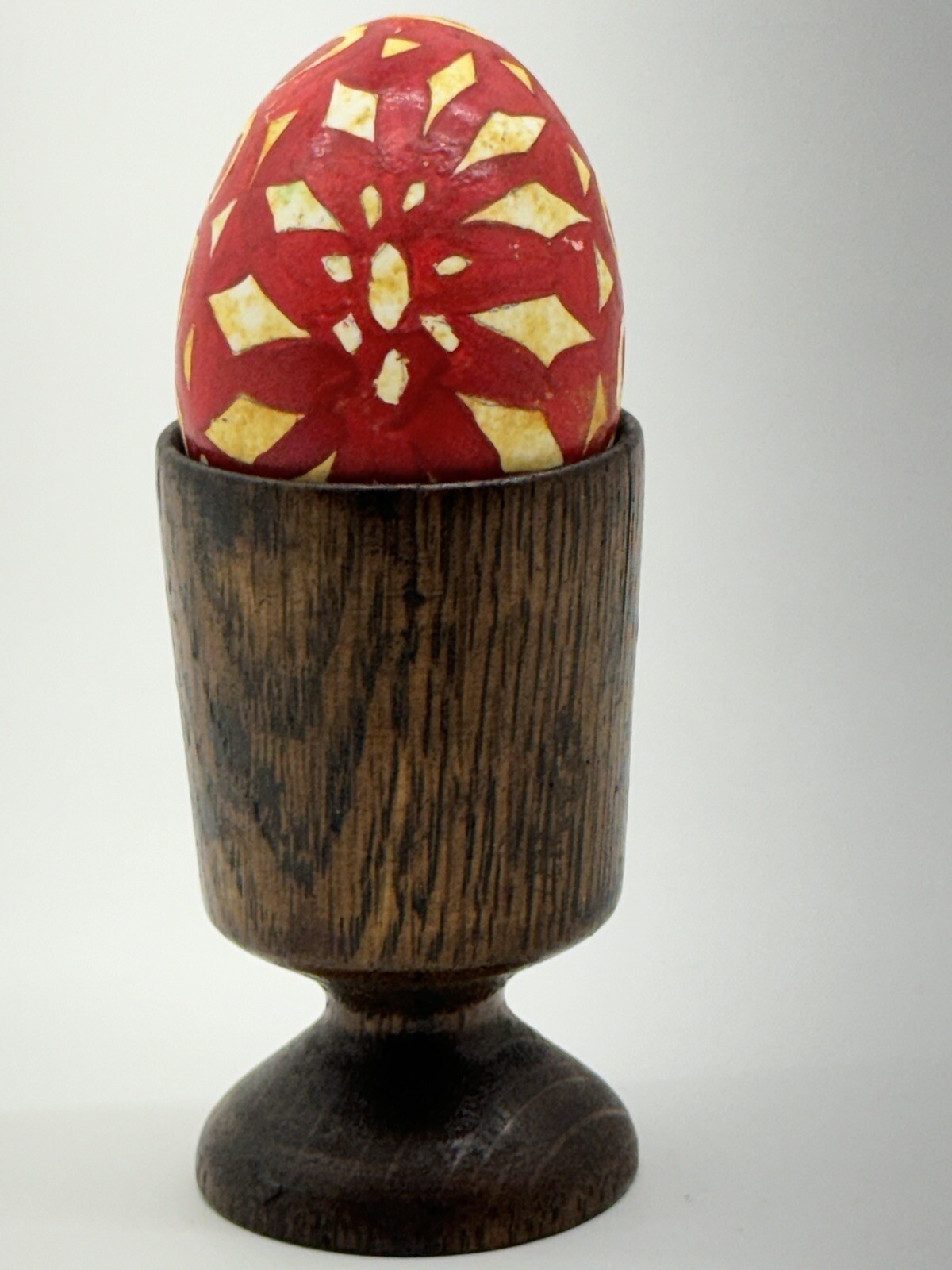 • Vintage Russian Hand Painted Wooden Egg on Stand