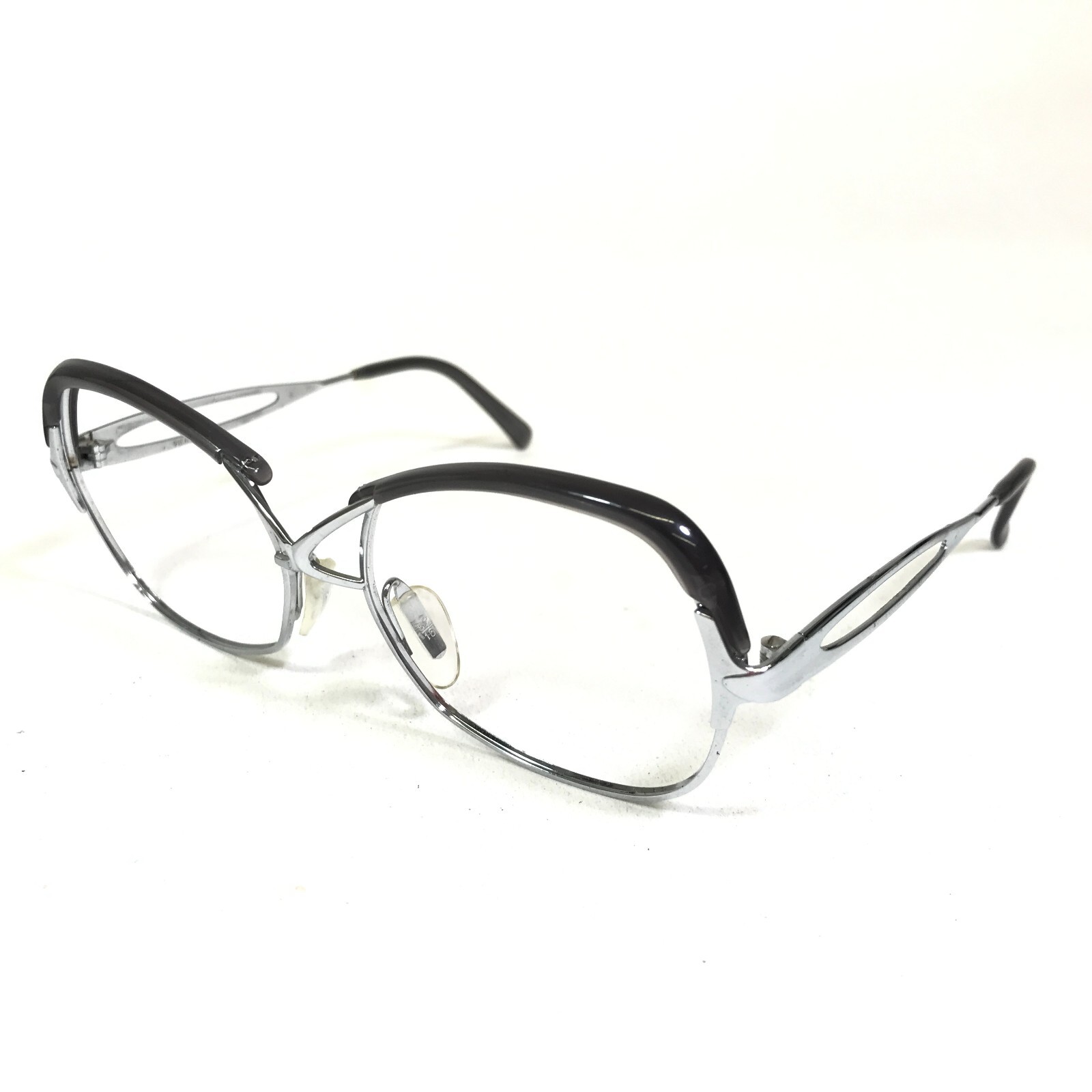 как выглядит Vintage Vienna Line Eyeglasses Frames Black Silver Large Butterfly 70s 50-17-130 фото