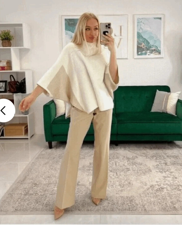 как выглядит Note di Anita Italy Cashmere Wool Mockneck Colorblock Poncho Cape Camel Ivory OS фото