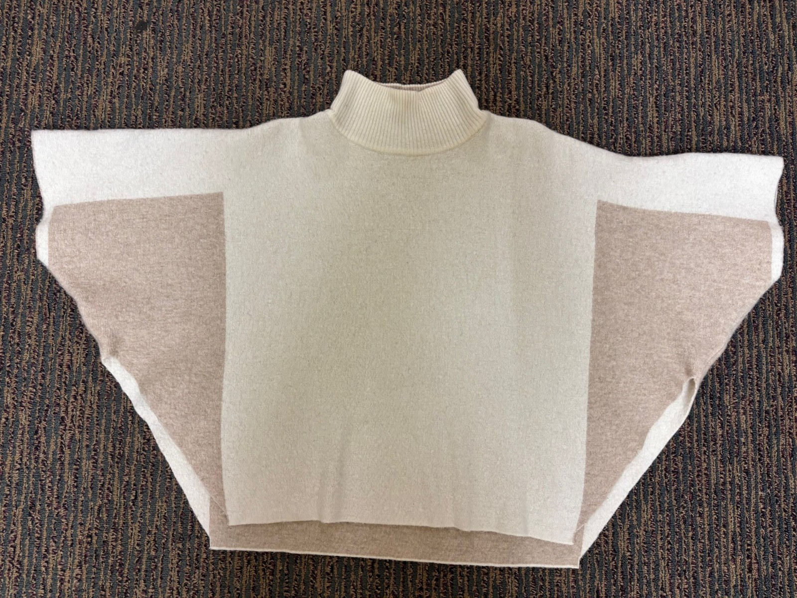 Note di Anita Italy Cashmere Wool Mockneck Colorblock Poncho Cape Camel Ivory OS