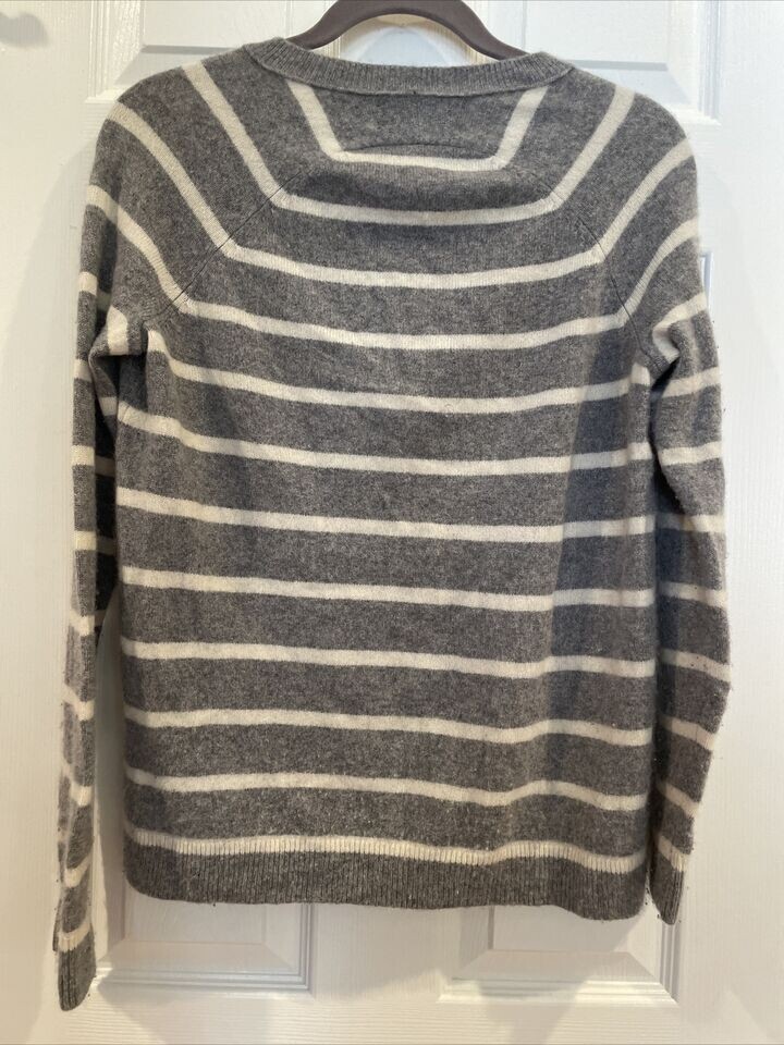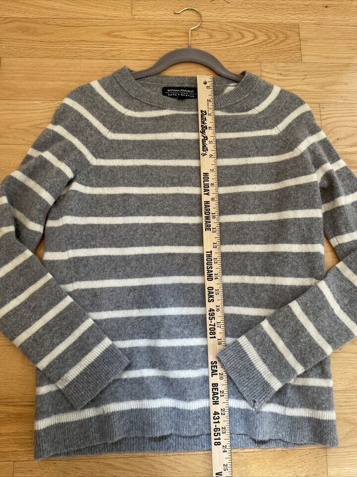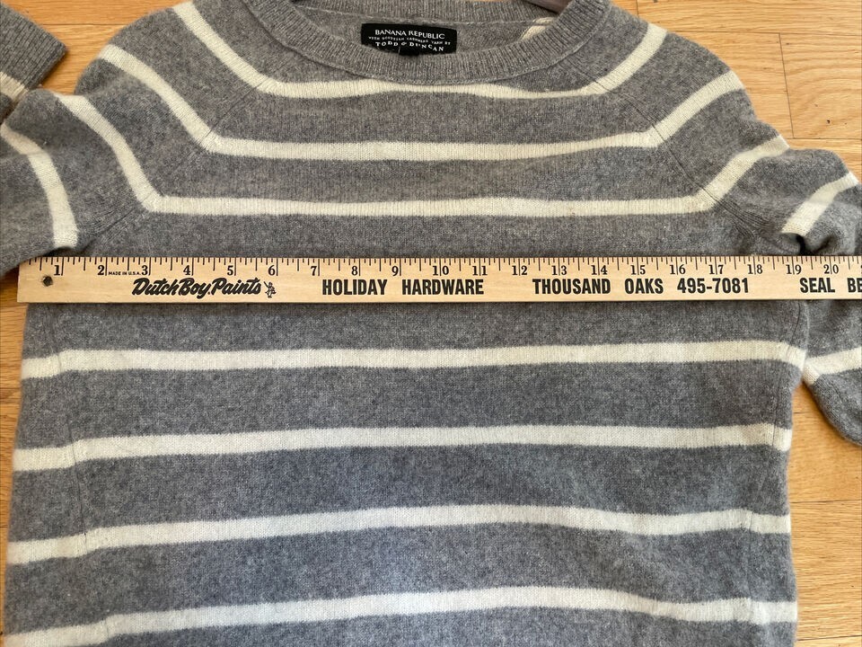 Banana Republic Todd Duncan Womens 100 Cashmere Sweater Gray Ivory Striped S
