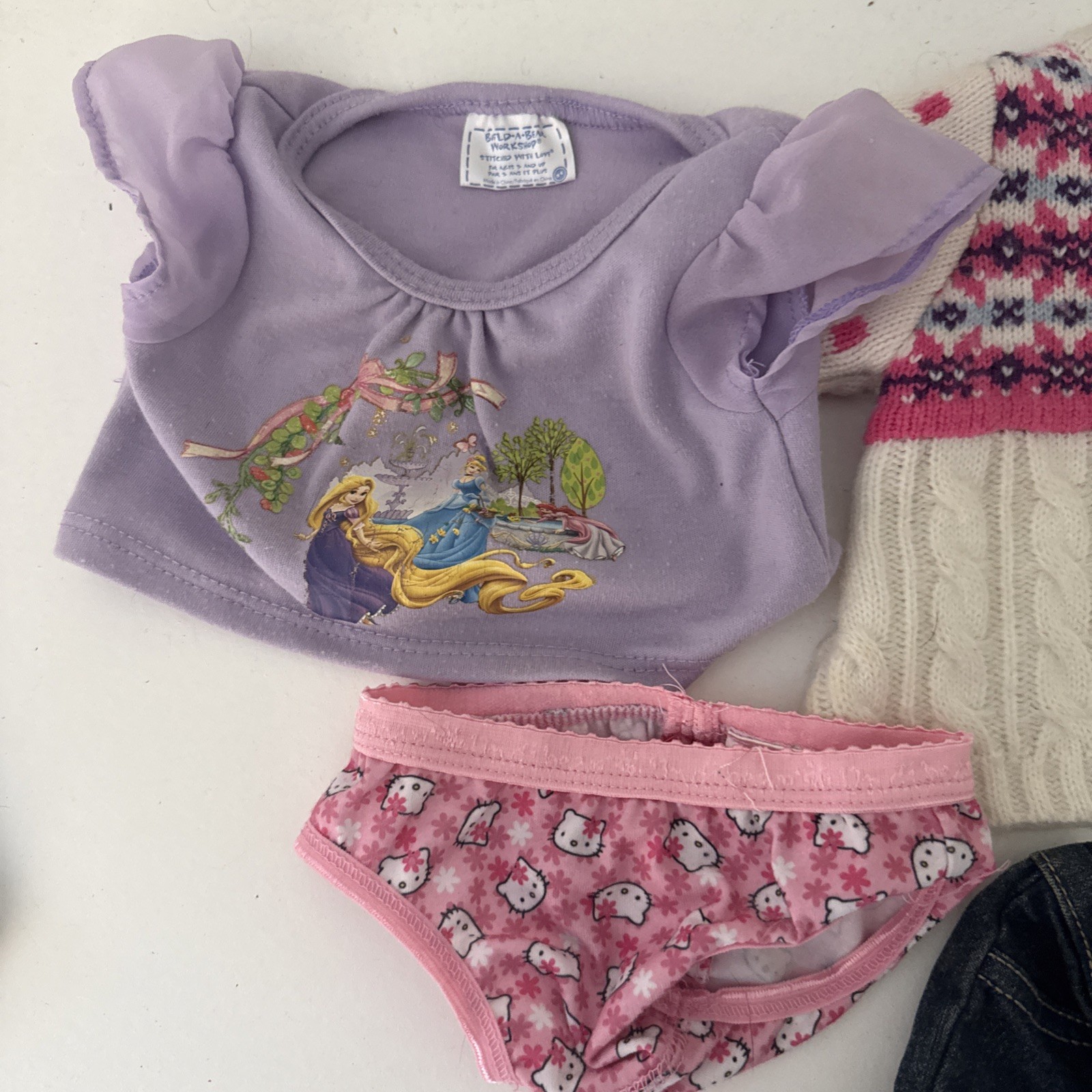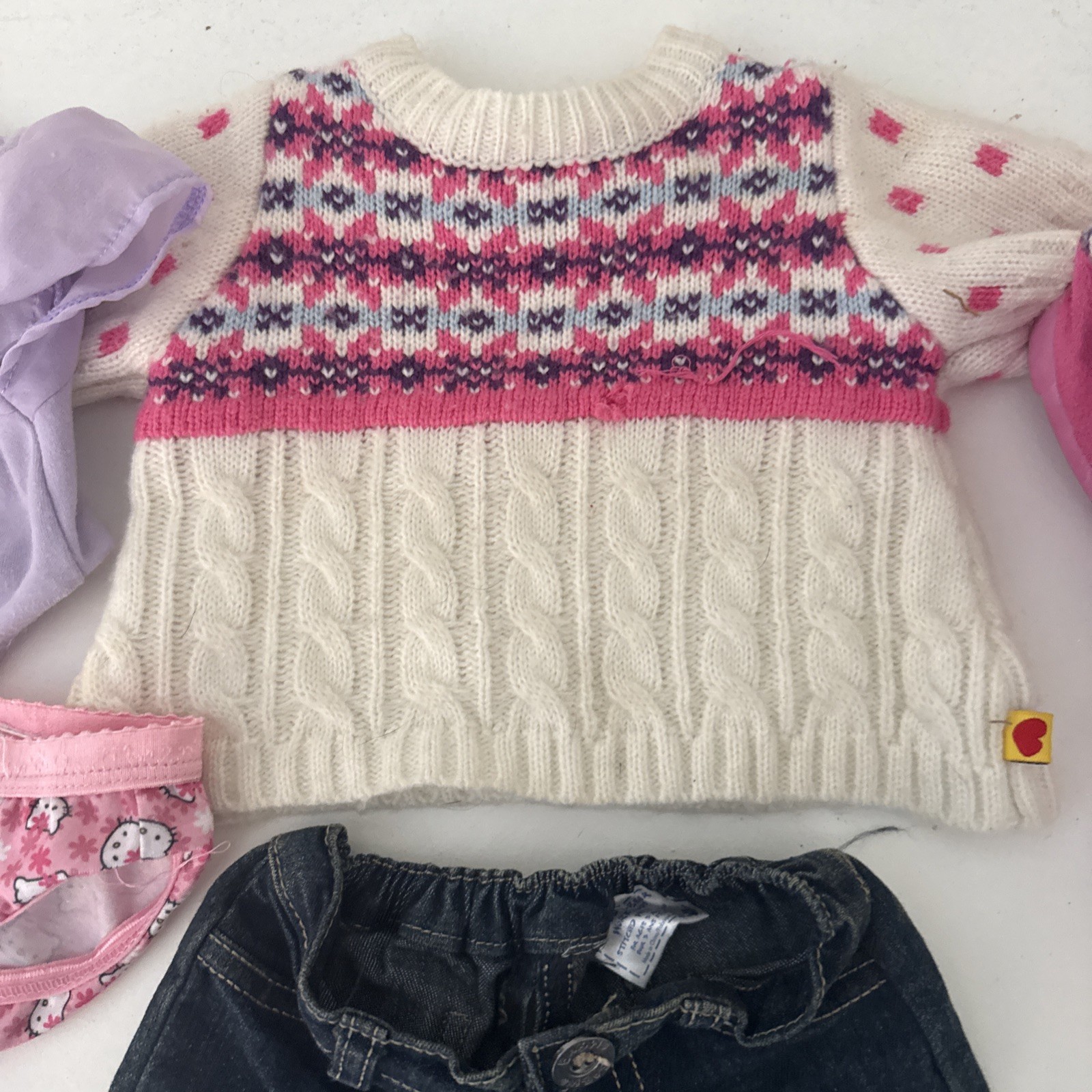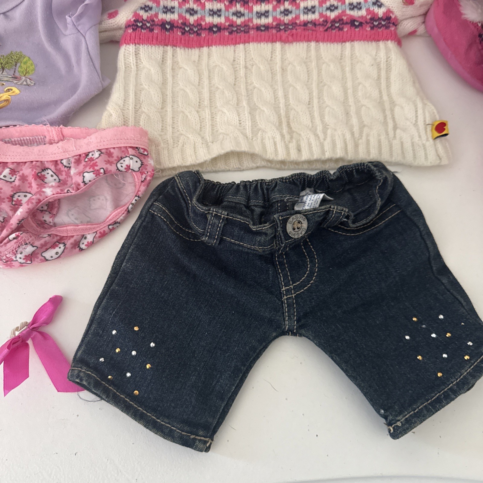 как выглядит Build A Bear Lot of Clothing Pink Sweater Boots Jeans Disney T Hello Kitty Panty фото