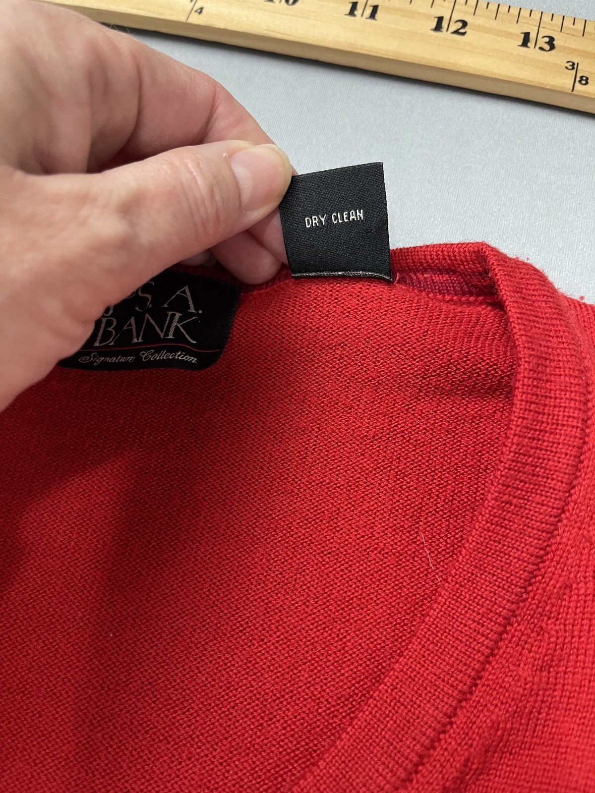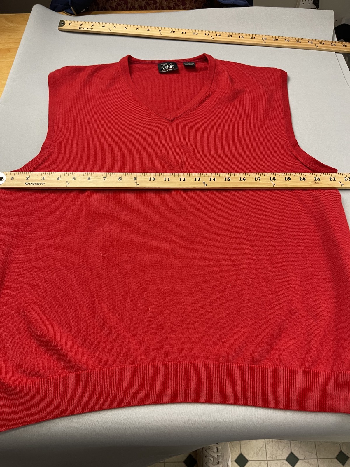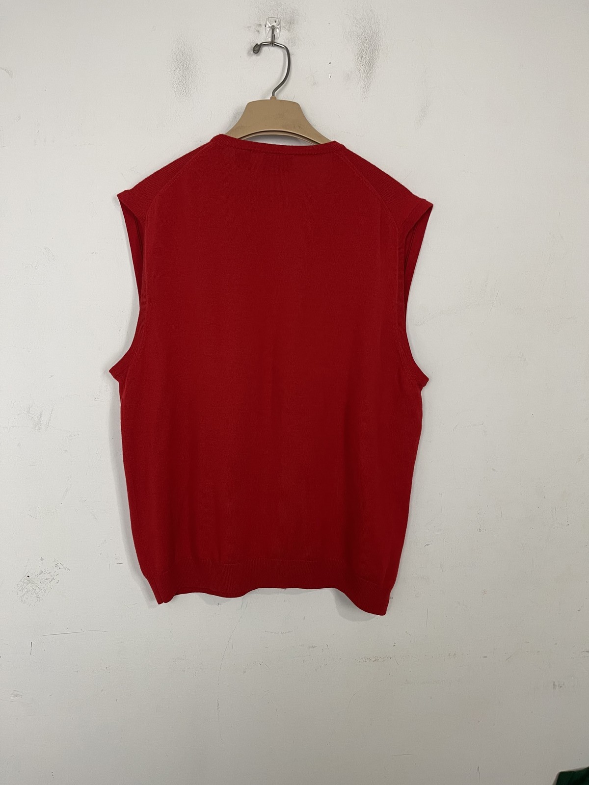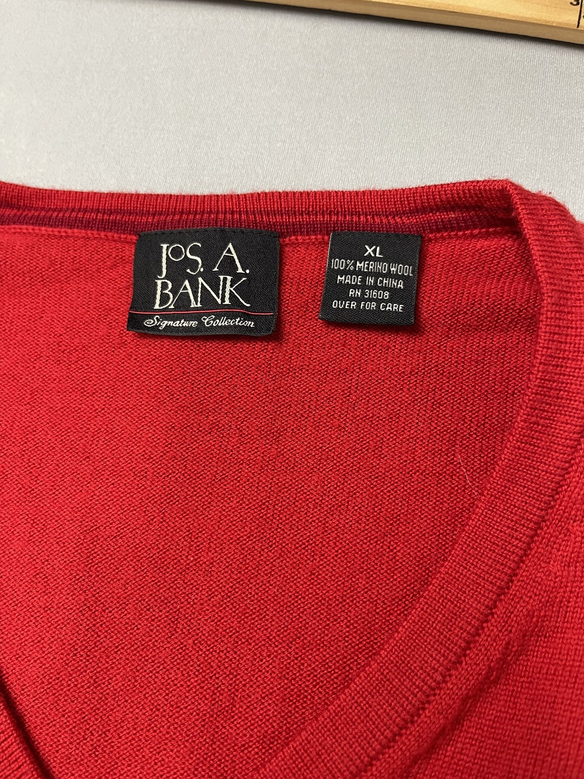 как выглядит Jos A Bank Mens Sweater Vest XL Red 100 Merino Wool V-Neck Holiday Christmas фото