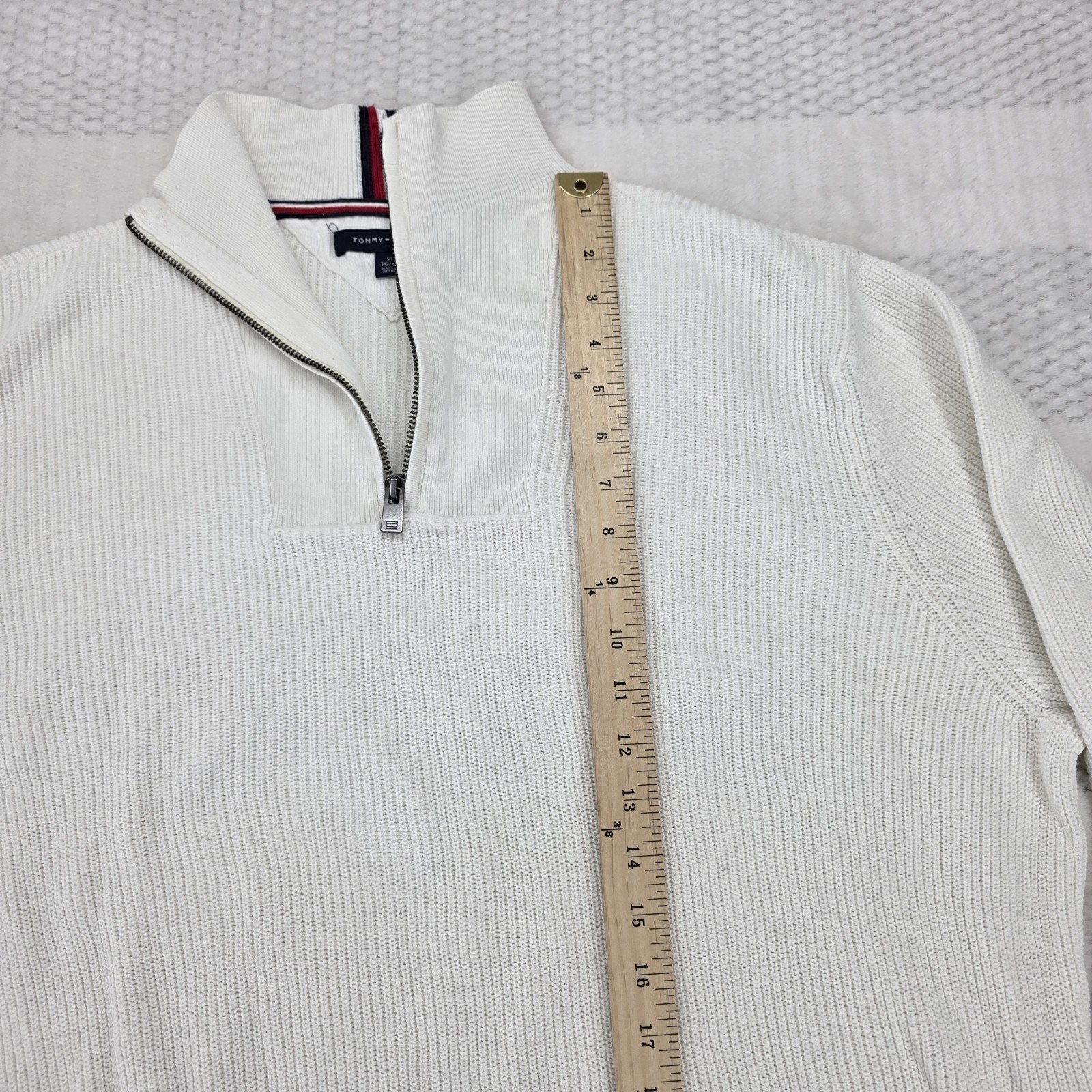 как выглядит Vintage Tommy Hilfiger Mens XL 1/4 Zip Pullover Sweater White 90s Y2K EUC фото