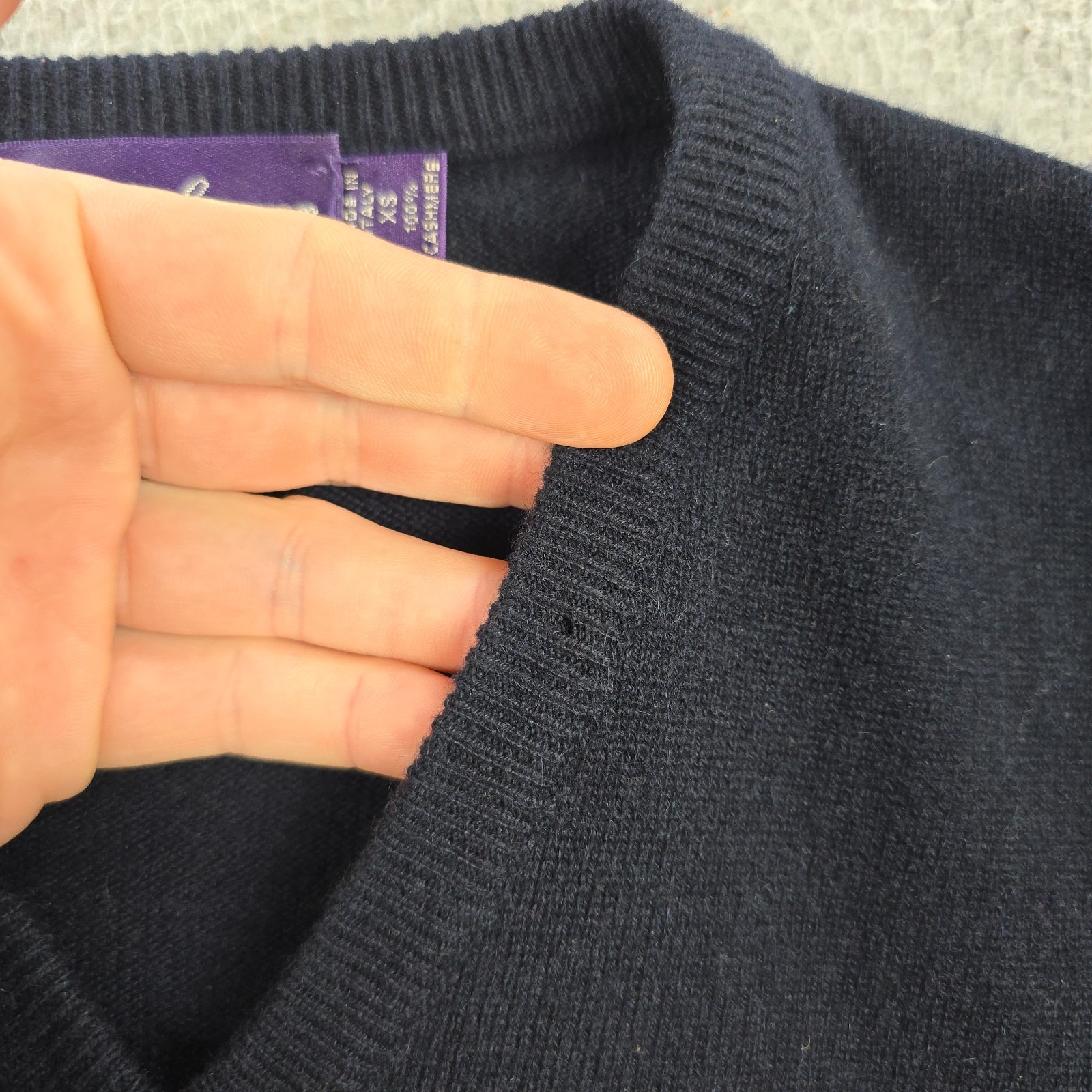 как выглядит Ralph Lauren Purple Label 100 Cashmere V-Neck Knit Sweater Mens Size XS Damaged фото