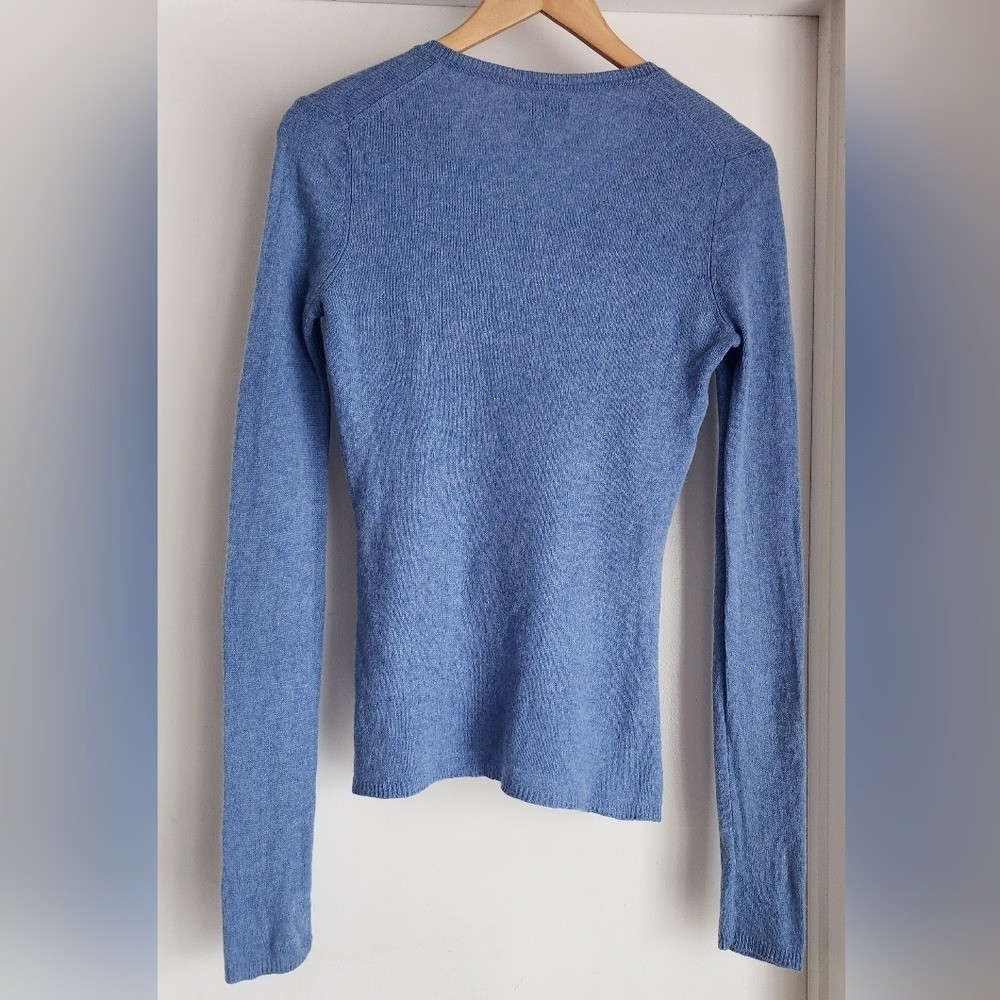 как выглядит Adrienne Vittadini Light Blue Cashmere Vneck Long Sleeve Sweater M фото