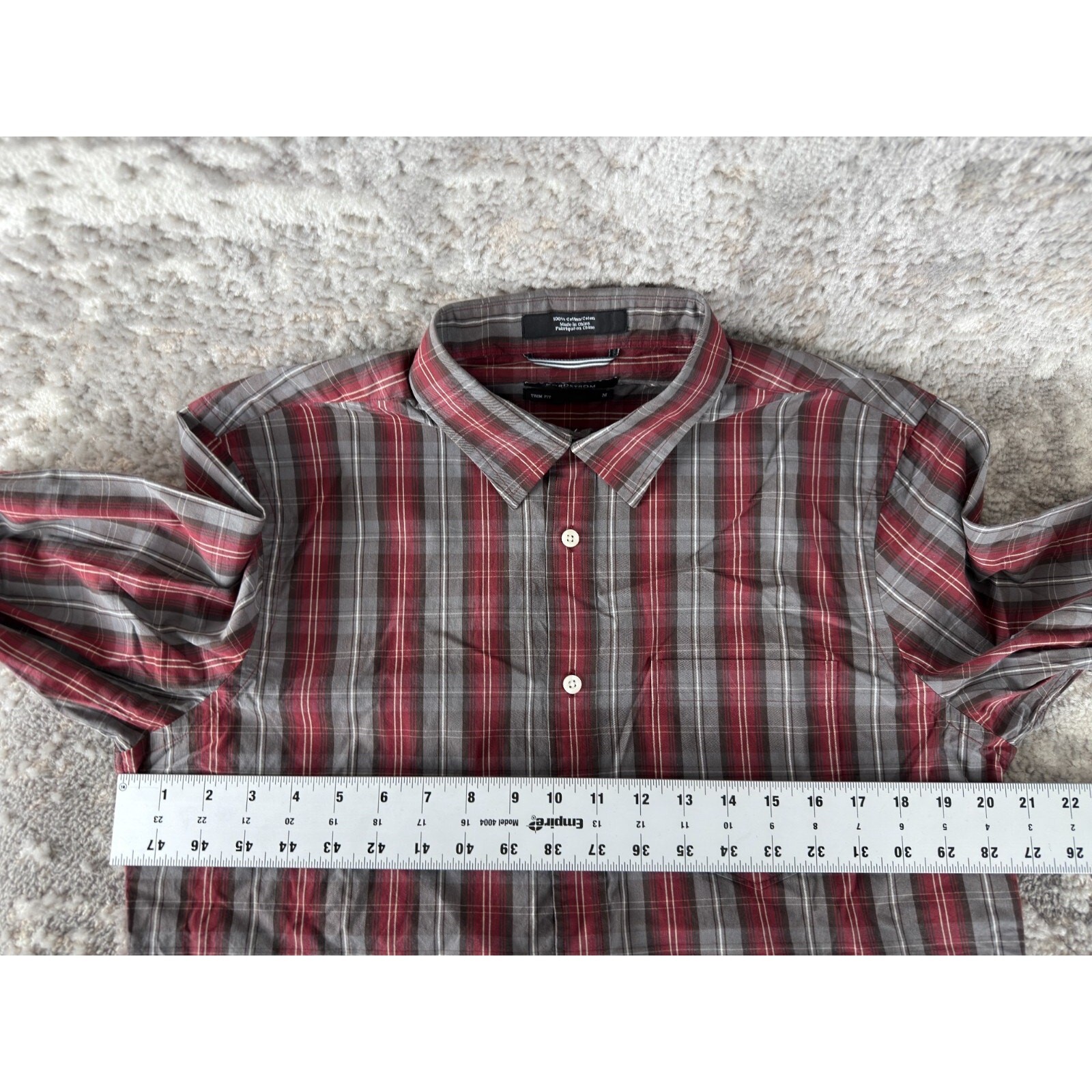 как выглядит Nordstrom Size M Trim Fit Plaid Casual Button Shirt Long Sleeve Collar фото
