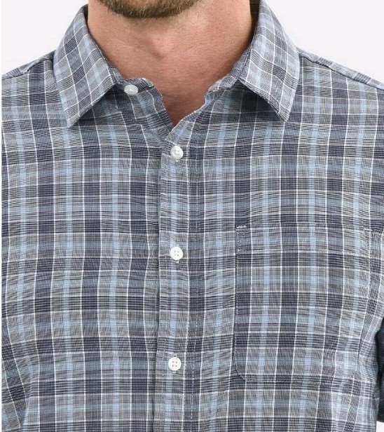 как выглядит George Mens SMALL Long Sleeve Performance Button Front Shirt BLUE PLAID 21426 фото