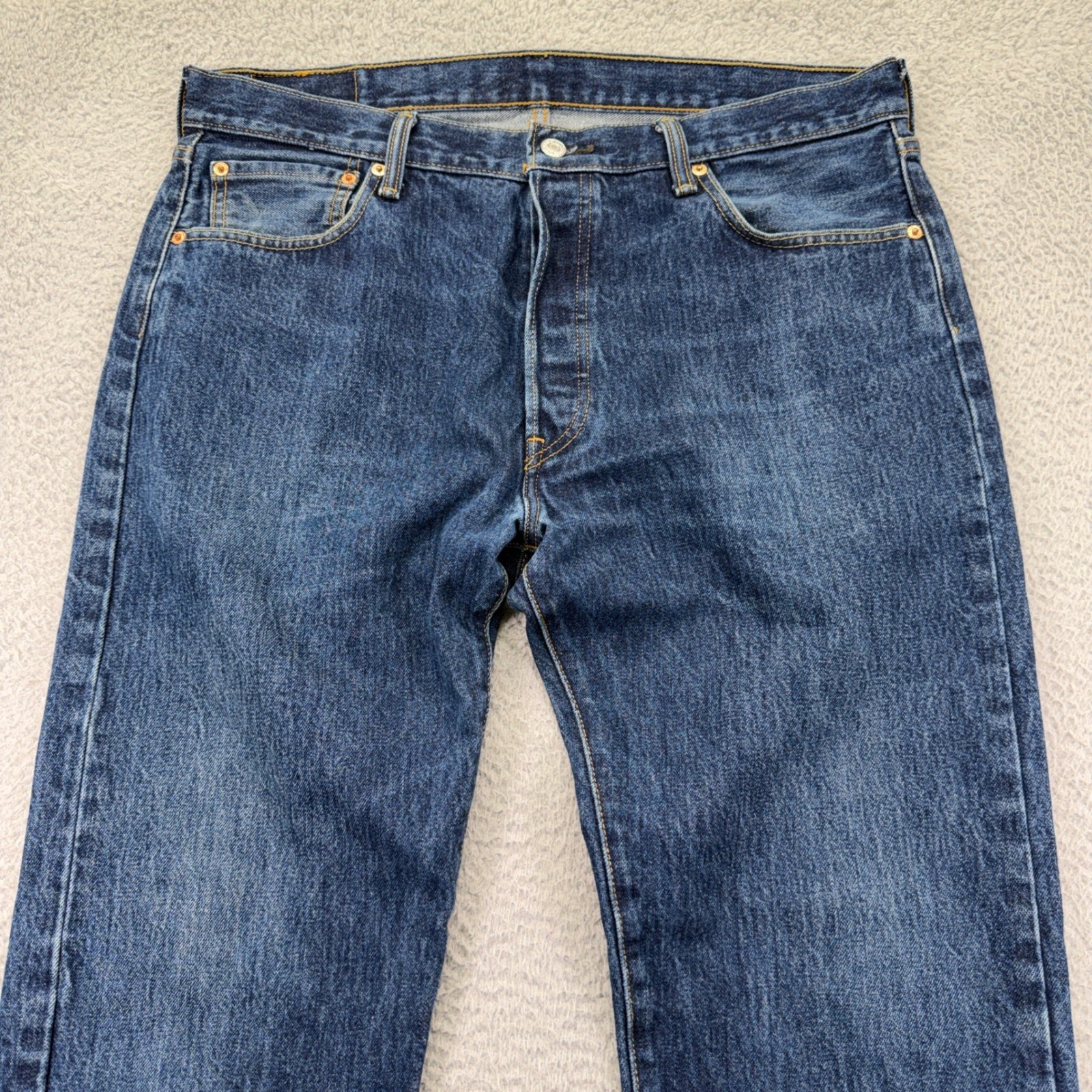 Levis 501 Jeans Mens 36x32 Blue Straight Button Fly American Dark Wash Denim