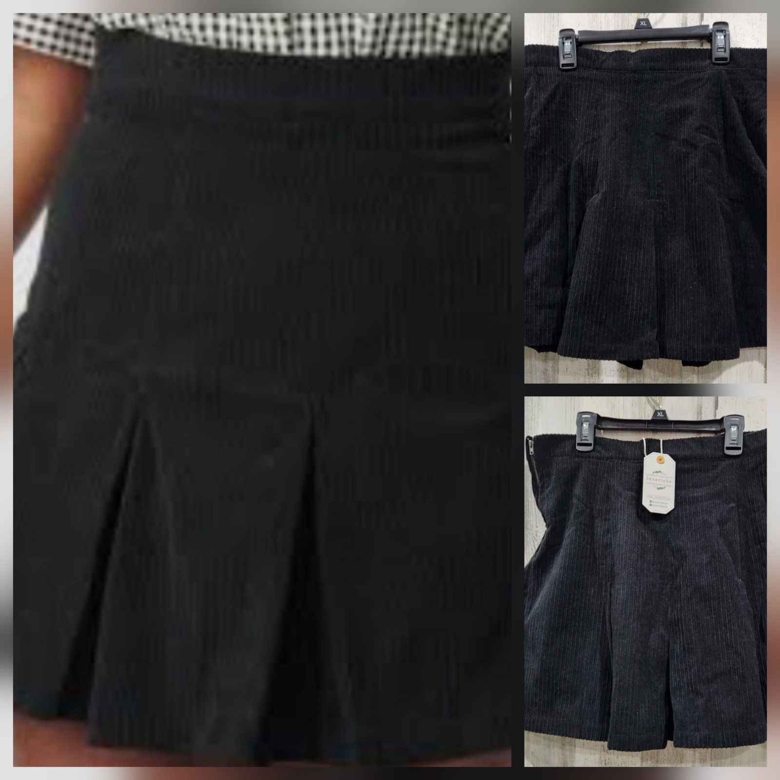 как выглядит UNIQUE VINTAGE Black Corduroy Fit Flare Mini Skirt Size LARGE Side Zip NEW фото