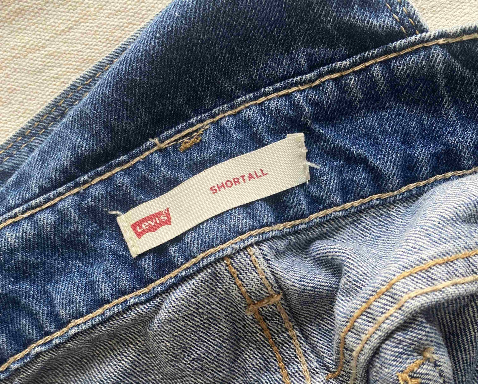 как выглядит Levis Shortall Bib Overalls Jeans Youth Girls 7 Blue Distressed Shorts Red Tab фото