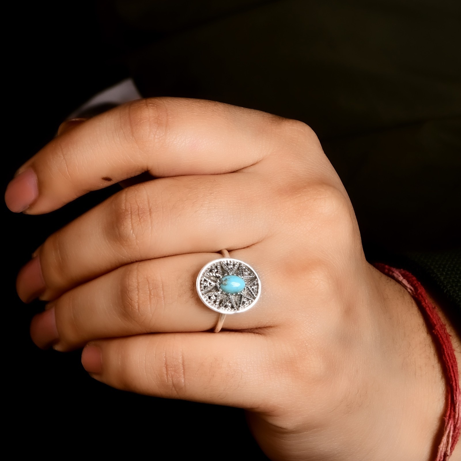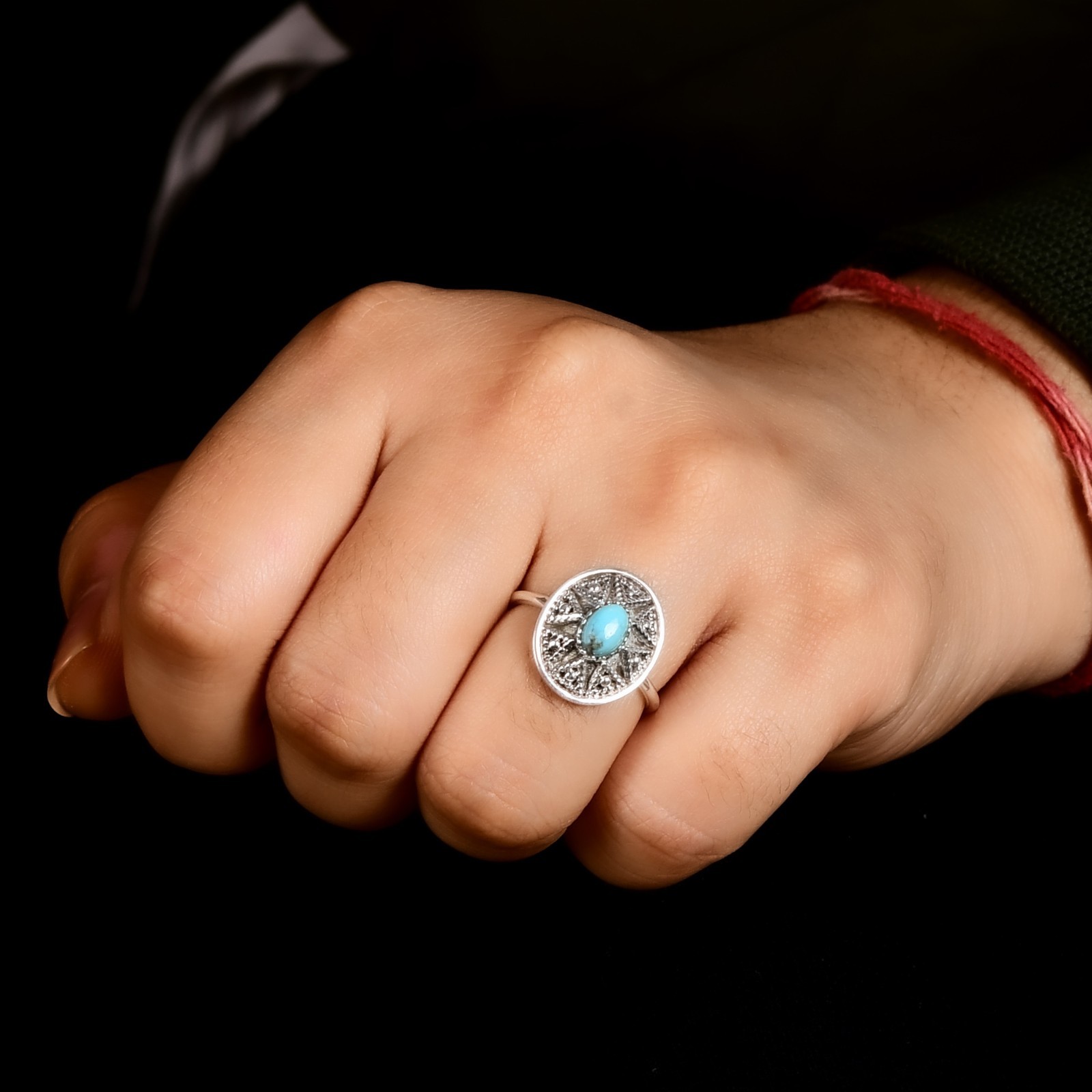 Birthday Gift Turquoise Ring for Women Sterling Silver Finish Boho Gift Jewelry