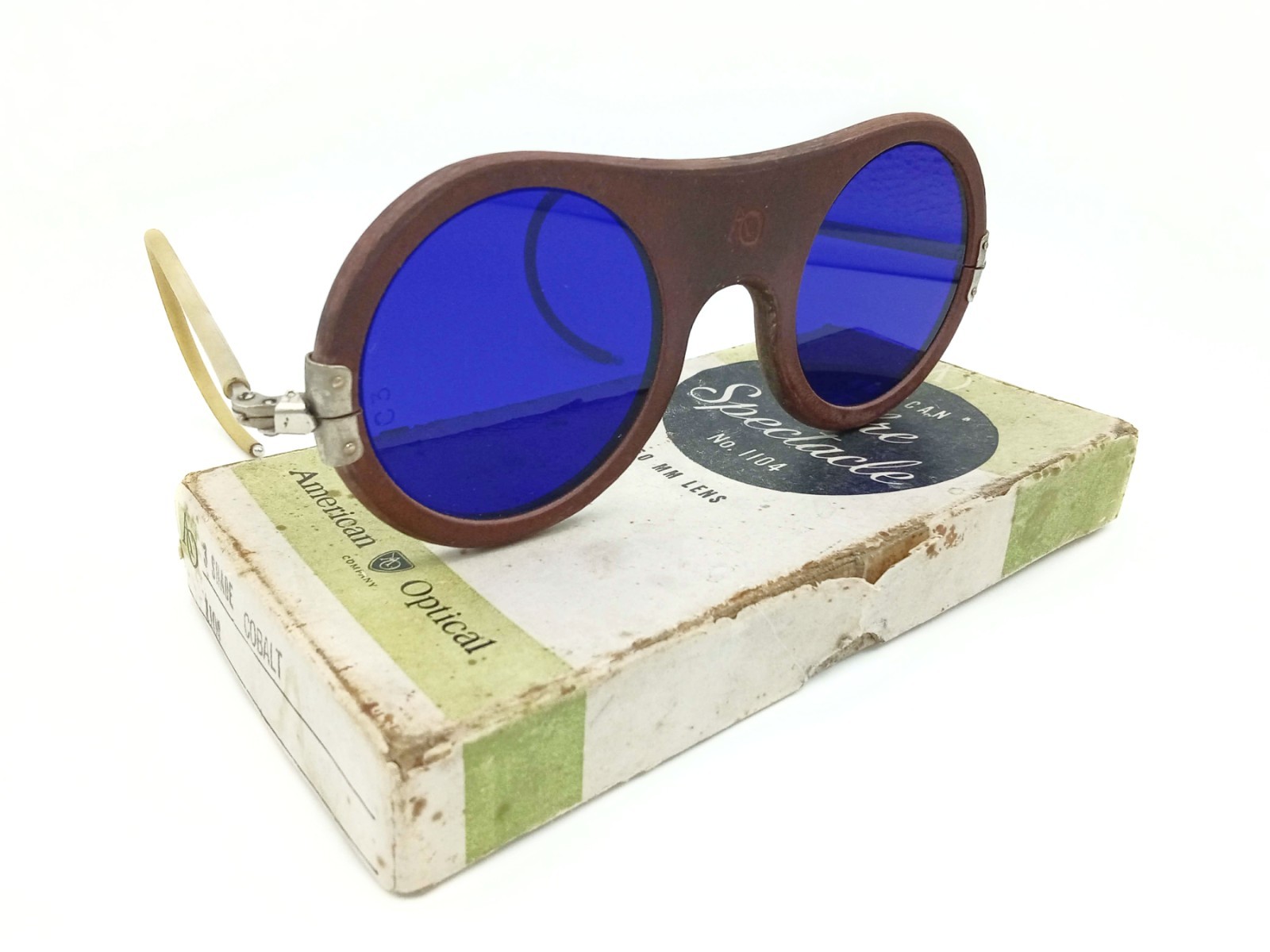 Antique American Optical Cobalt Blue Welding Spectacles Safety Sunglasses Vtg AO