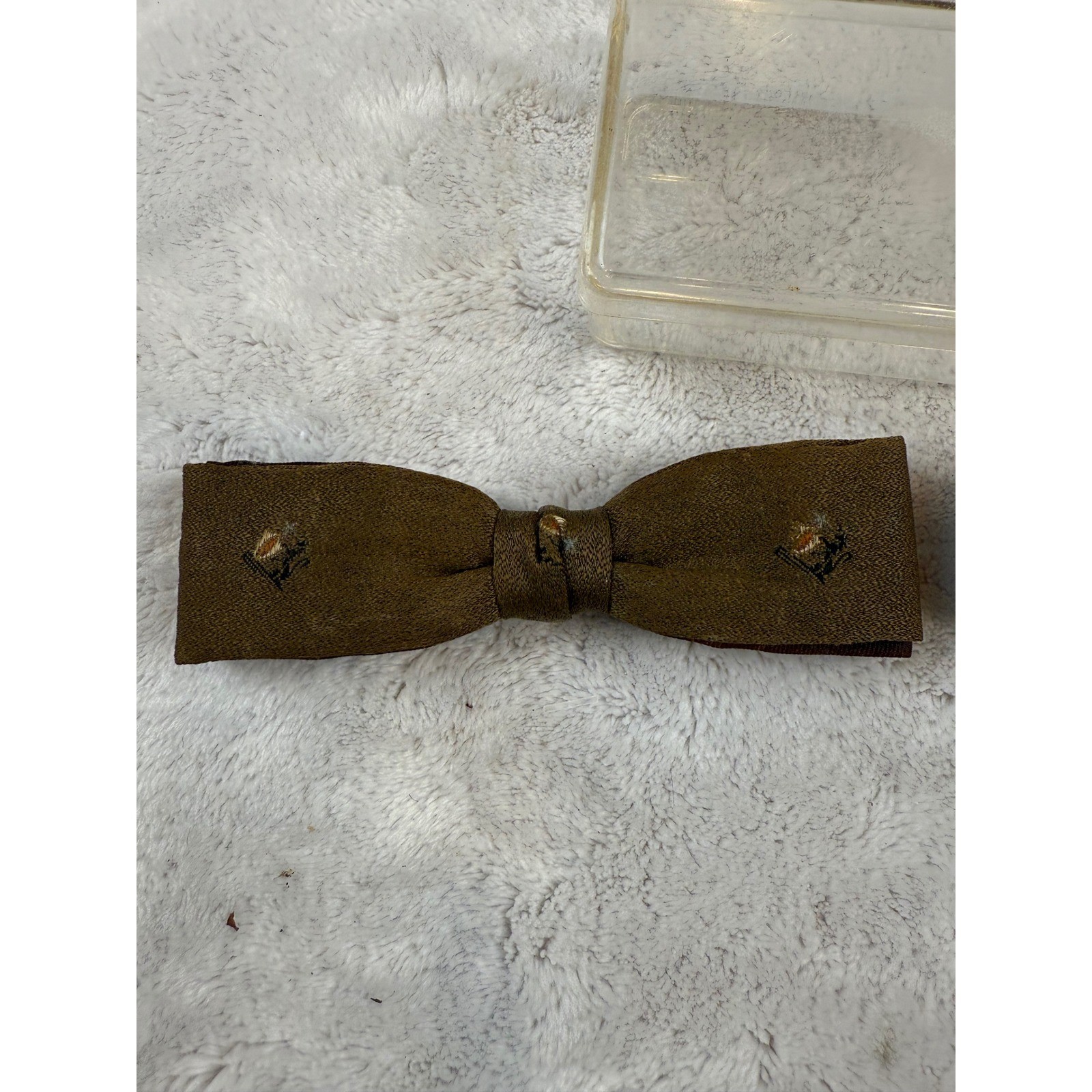 как выглядит Vintage Clip On Bow Tie Set Brown Plaid Embroidered Rust Resistant Ormond 2pc фото