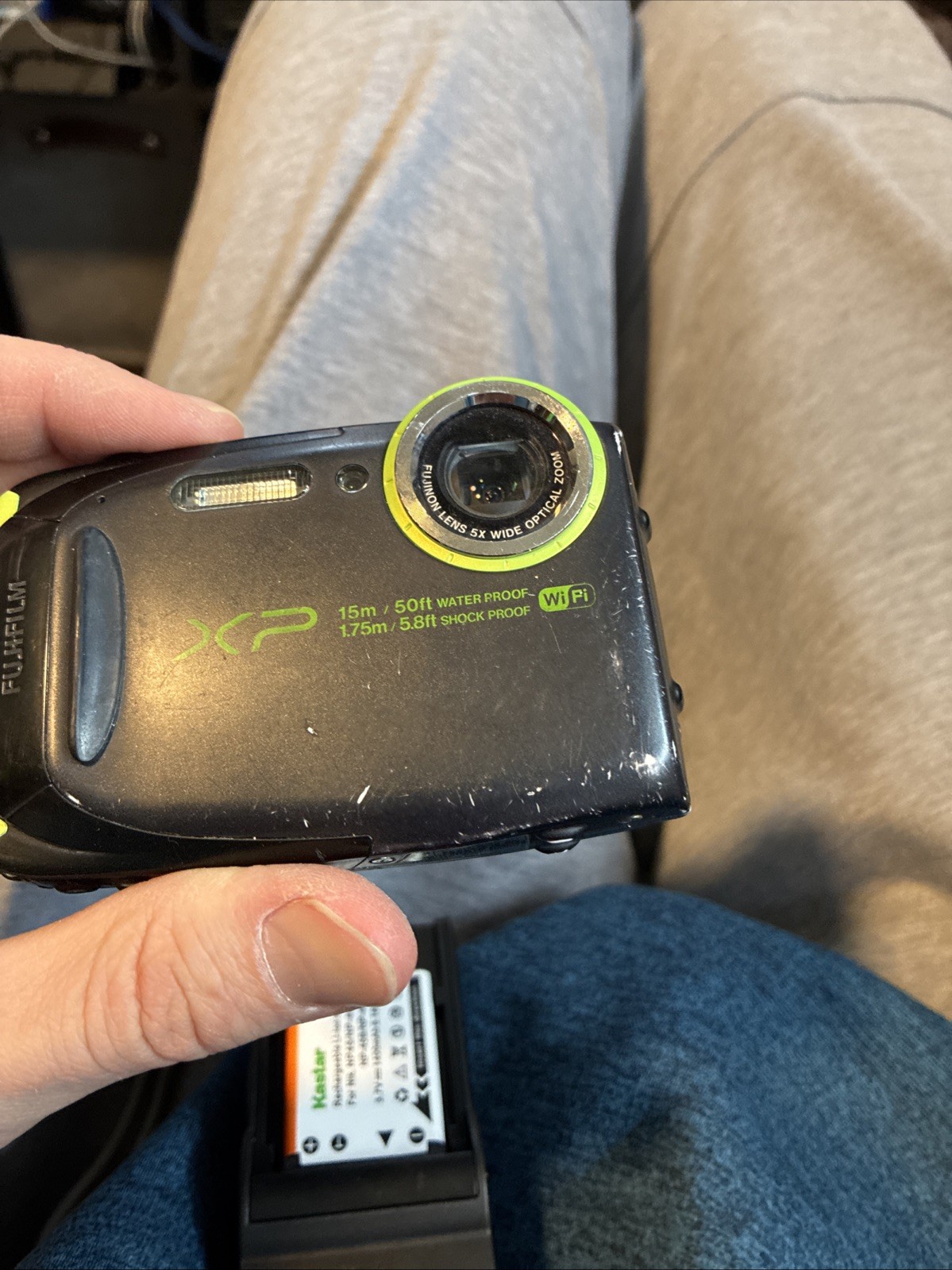Fujifilm Finepix XP80 Waterproof Digital camera Black green GOOD Xtra charger
