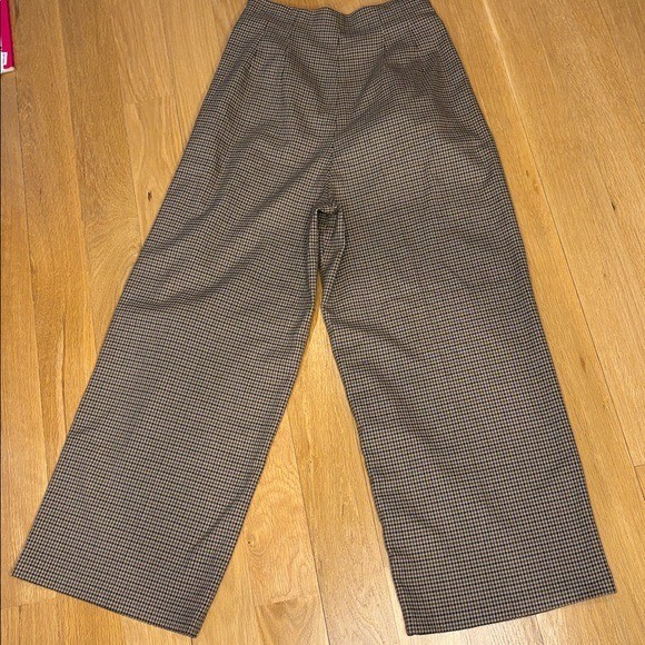 как выглядит Zara Trousers Wide Leg Crop Plaid Tie Waist Pleated Size Extra Small фото