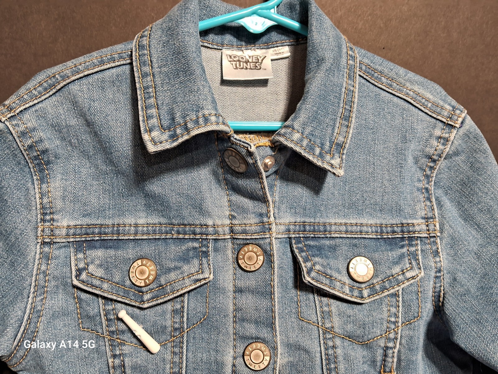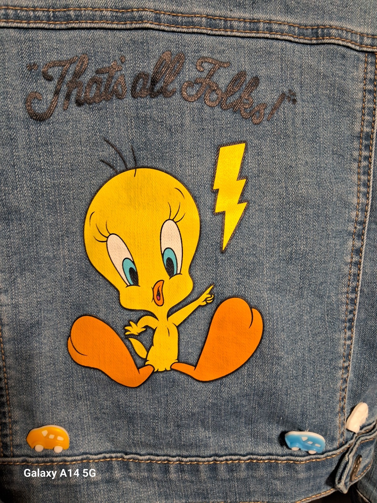 Girls Sz XS Looney Tunes Tweety Bird That's All Folks Blue Denim Stretch Jacket