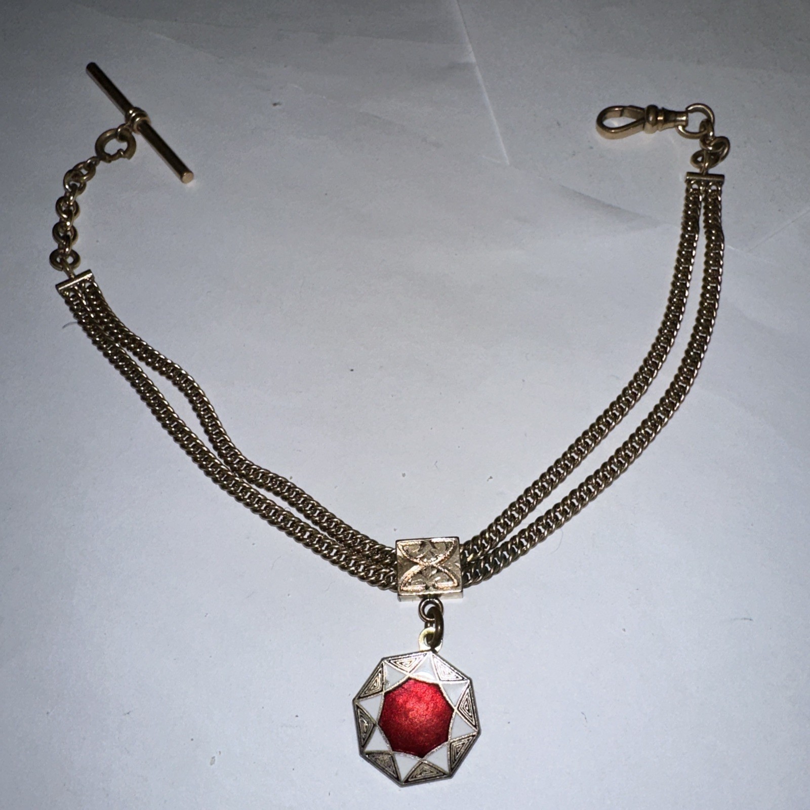 Antique Albert Pocket Watch Triple Stranded Chain GF/GP w/ Slider T Bar