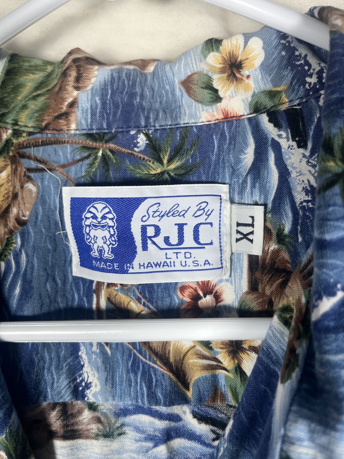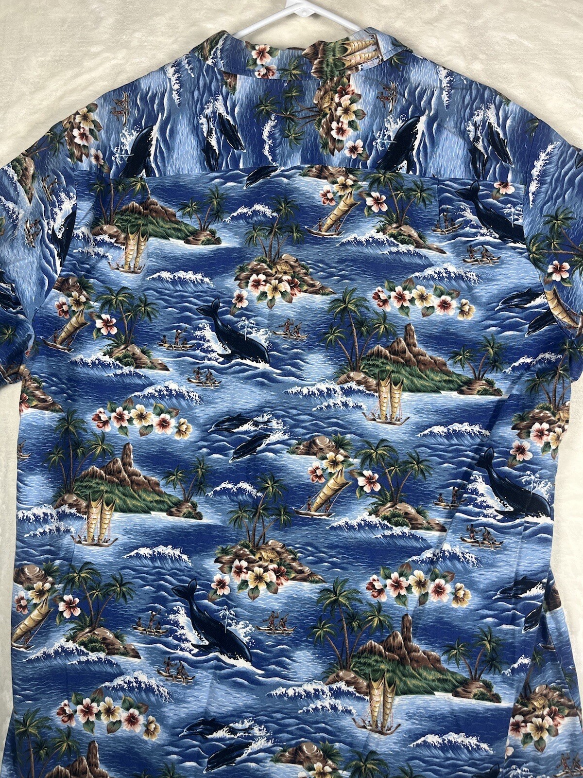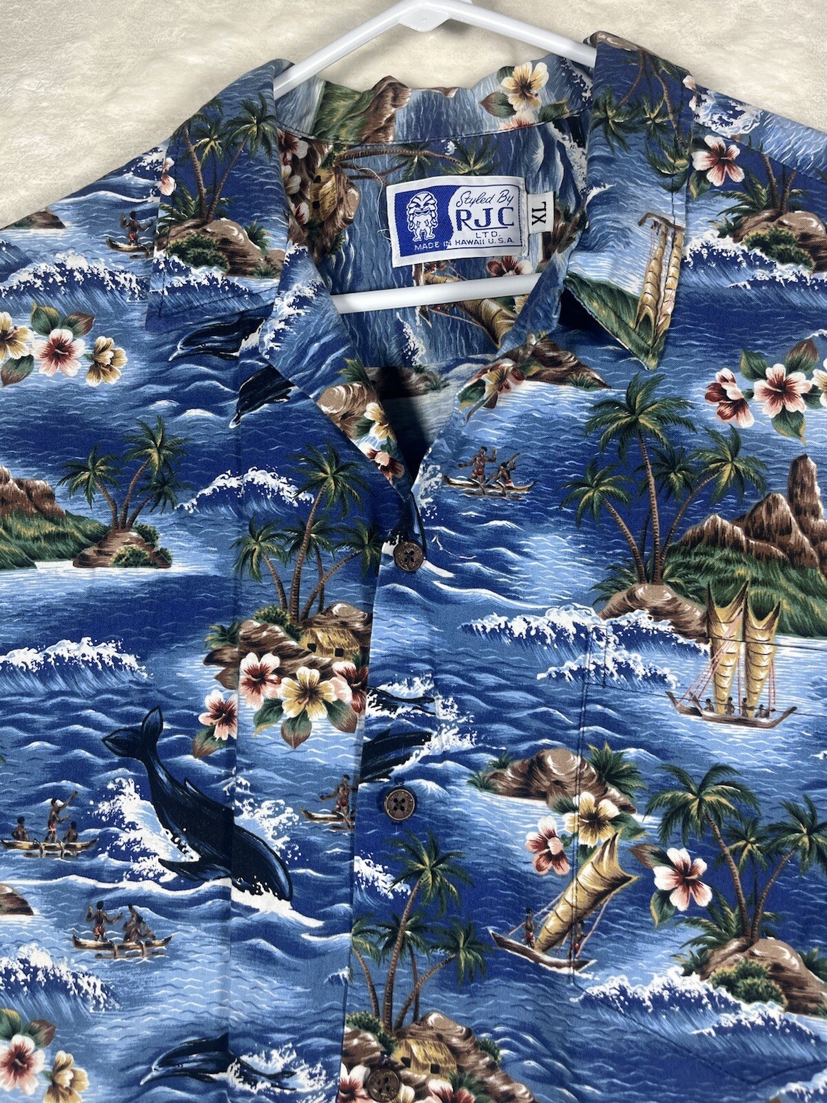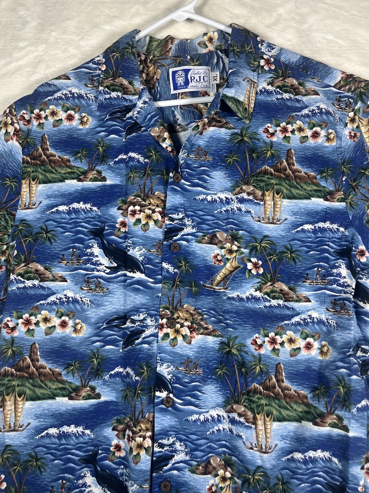 Vintage RJC Hawaiian Men s XL Button Up Whale Hawaii Aloha Islands Floral Palm.