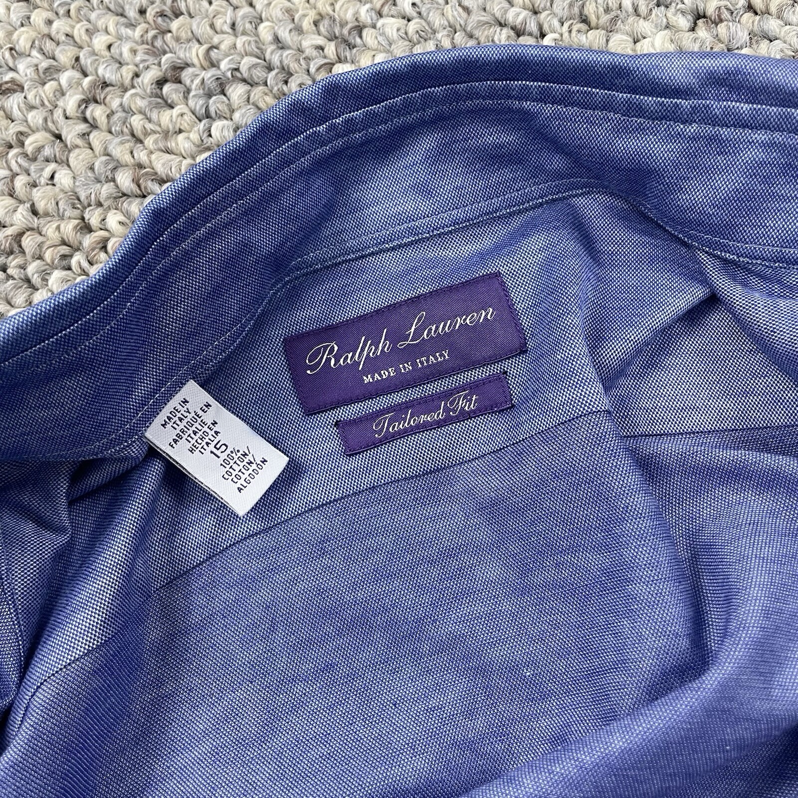 как выглядит Ralph Lauren Purple Label Tailored Fit Stretch Cotton Dress Shirt Blue Size 15 фото