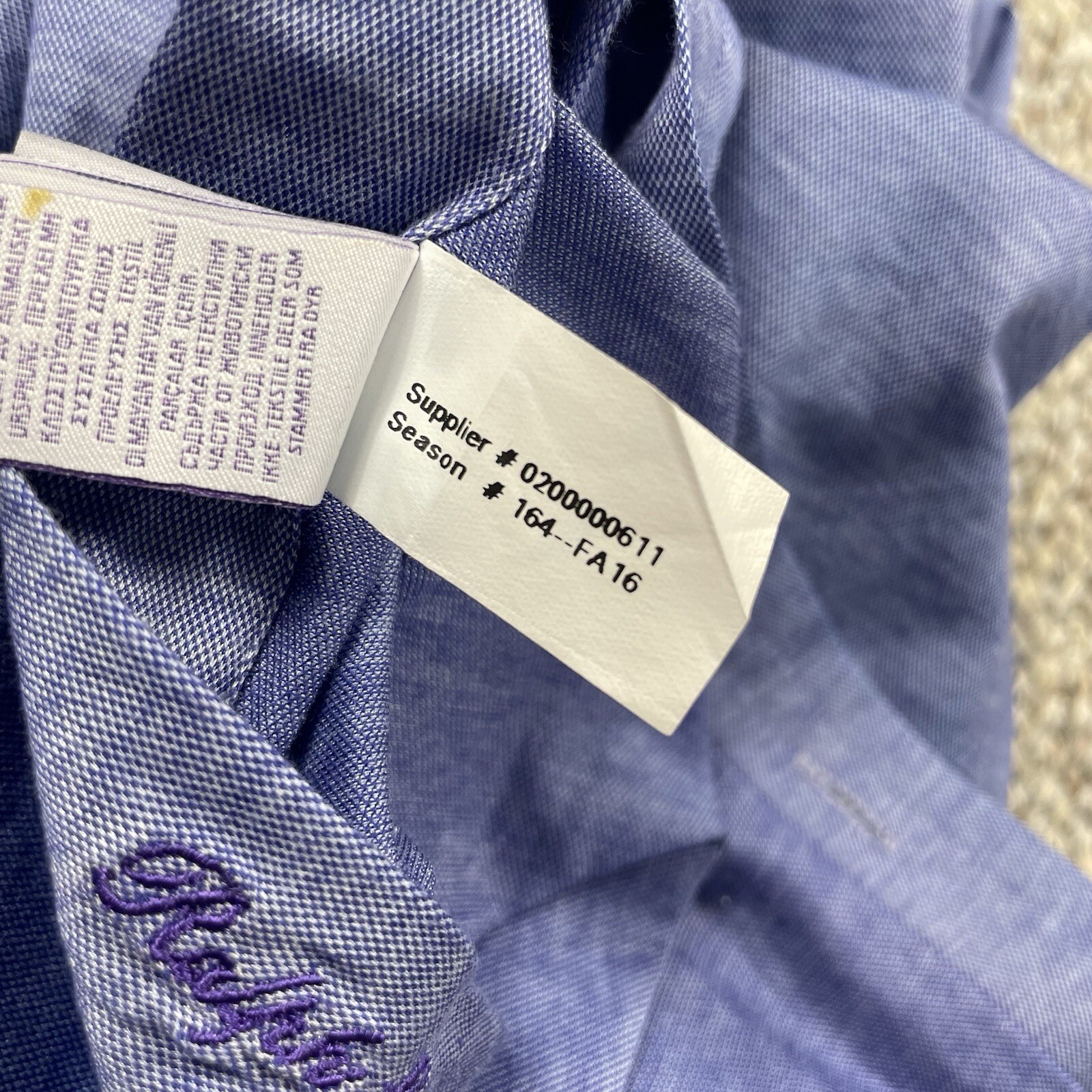 Ralph Lauren Purple Label Tailored Fit Stretch Cotton Dress Shirt Blue Size 15