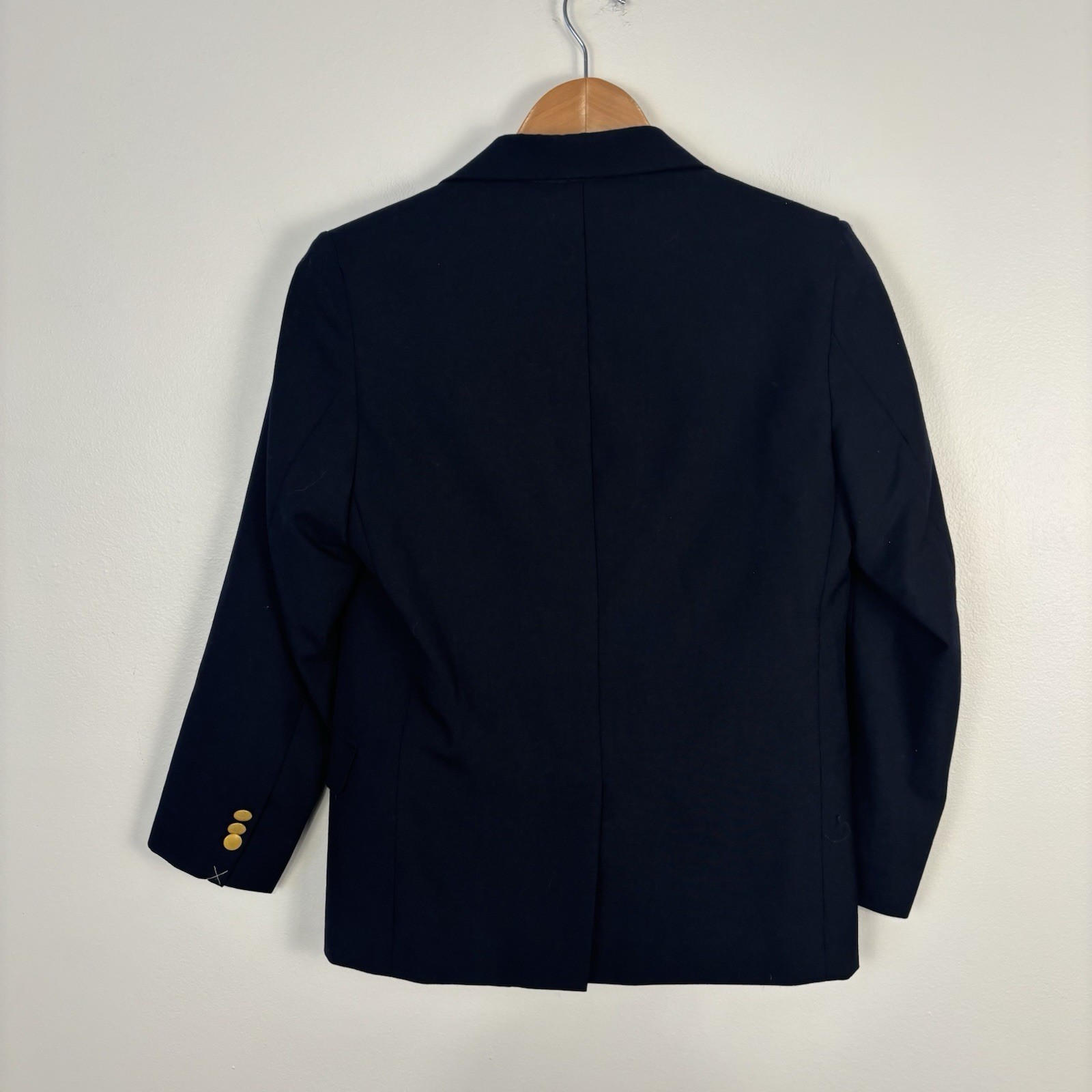 Lands' End Blazer Youth 12 Navy Blue Wool Blend Gold Buttons Kids Polyester Wool