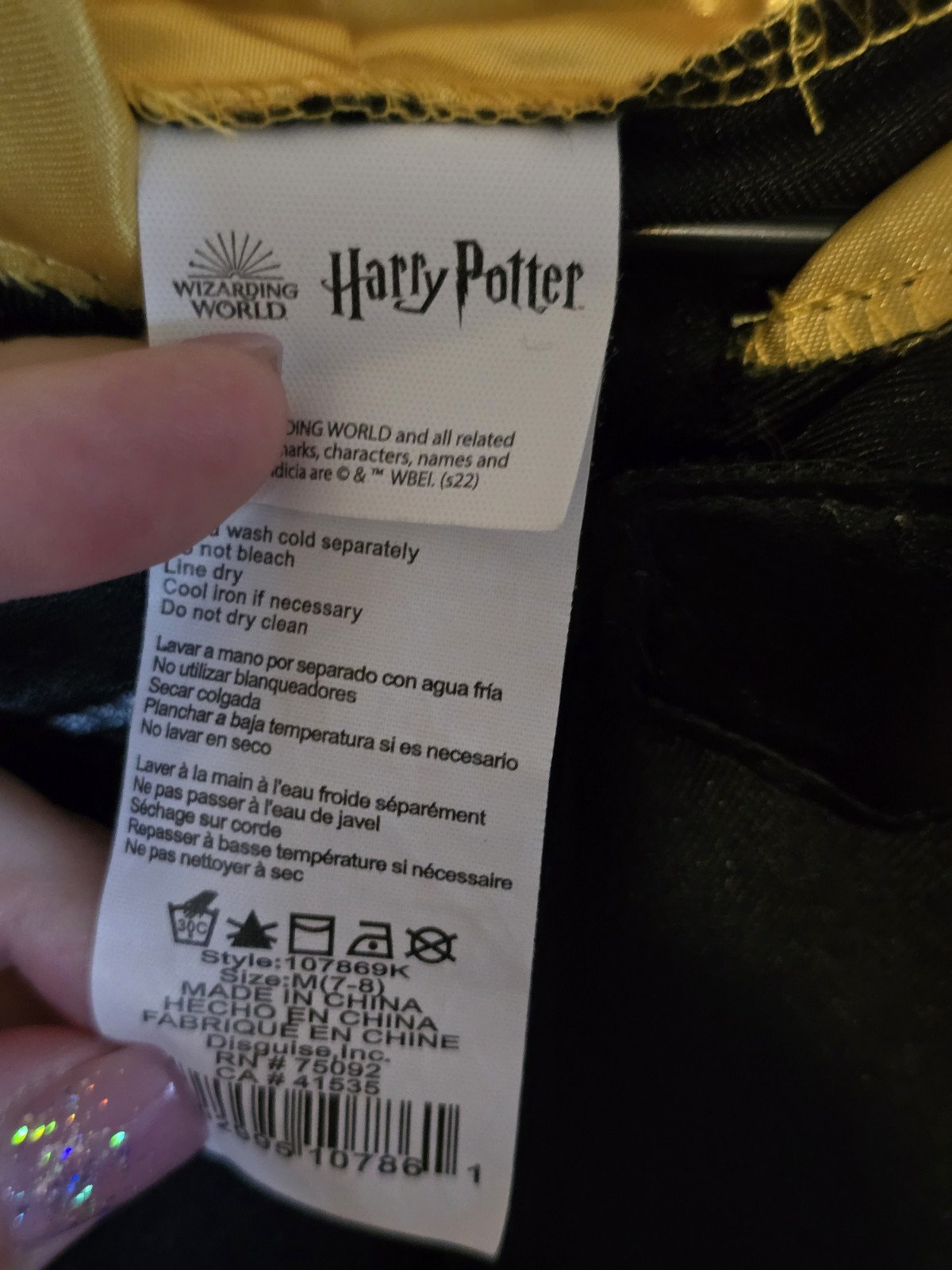 Harry Potter Hufflepuff Hooded Robe Costume Black Gold Child Size M 7-8