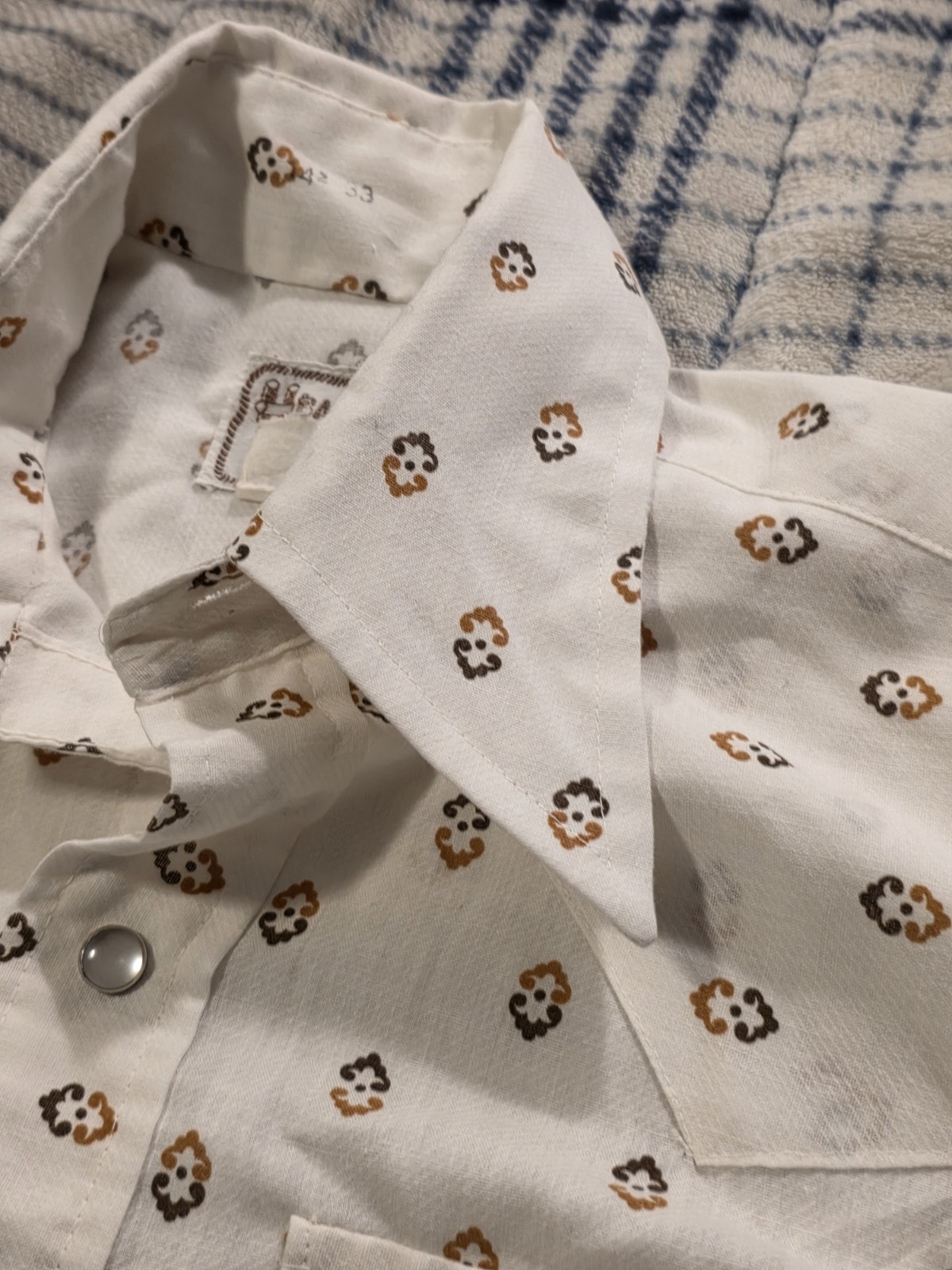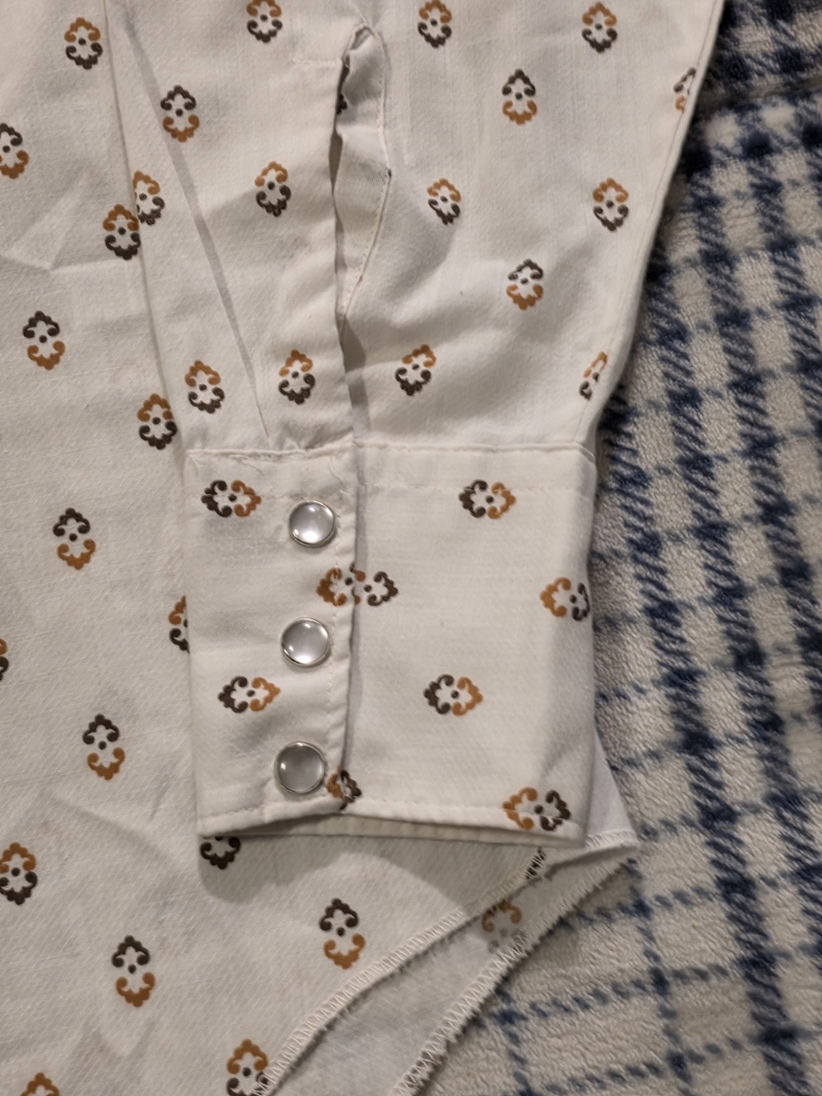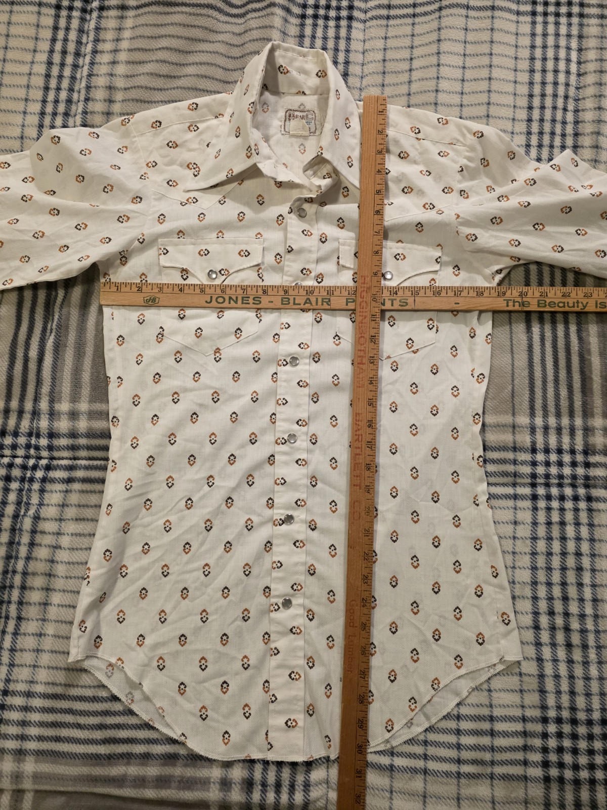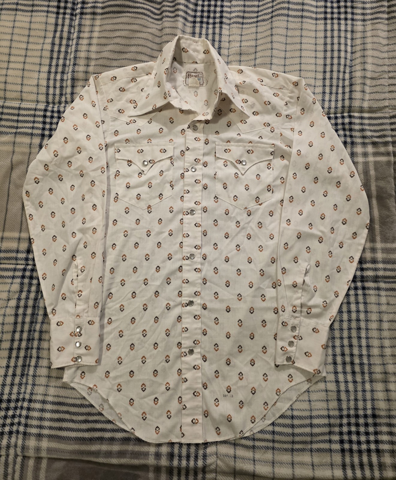как выглядит Vintage 60s H Bar C Long Sleeve Pearl Snap Western Shirt AOP Men