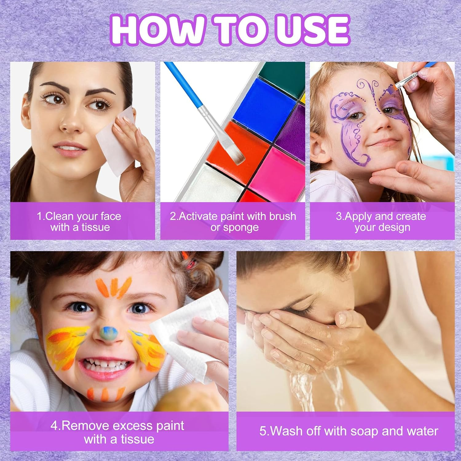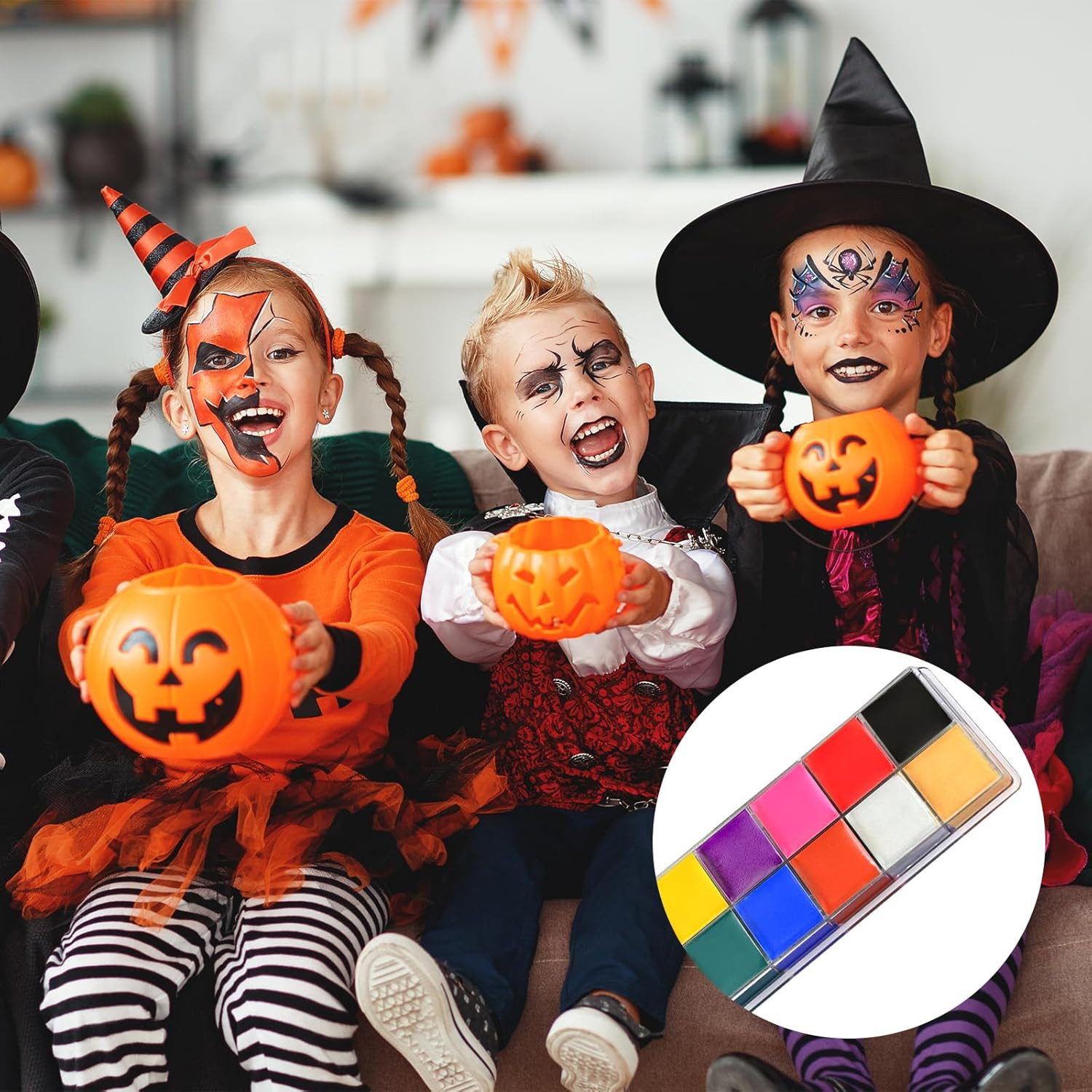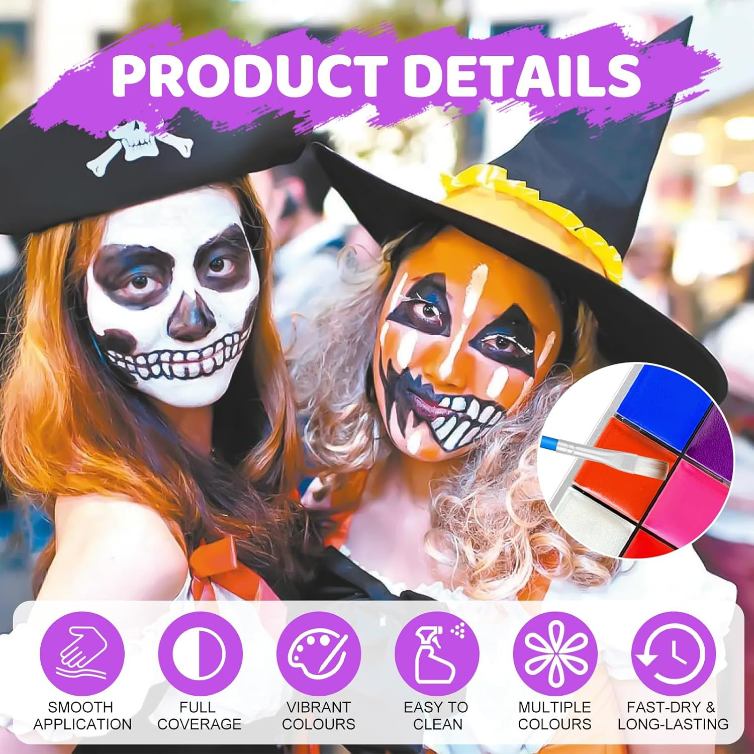 Face Paint 12 Color, Halloween Face Body Painting Set w/Brushes Safe Non-Toxic