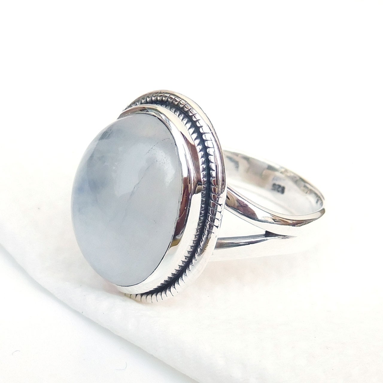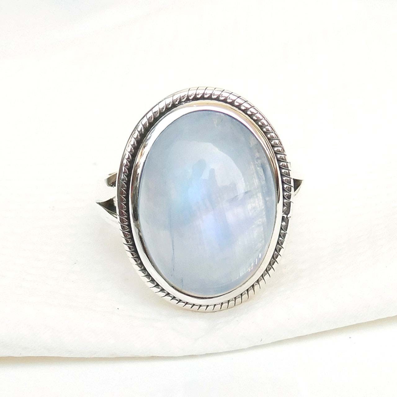 Natural Rainbow Moonstone Ring Solid 925 Sterling Silver Moonstone Jewelry-R229