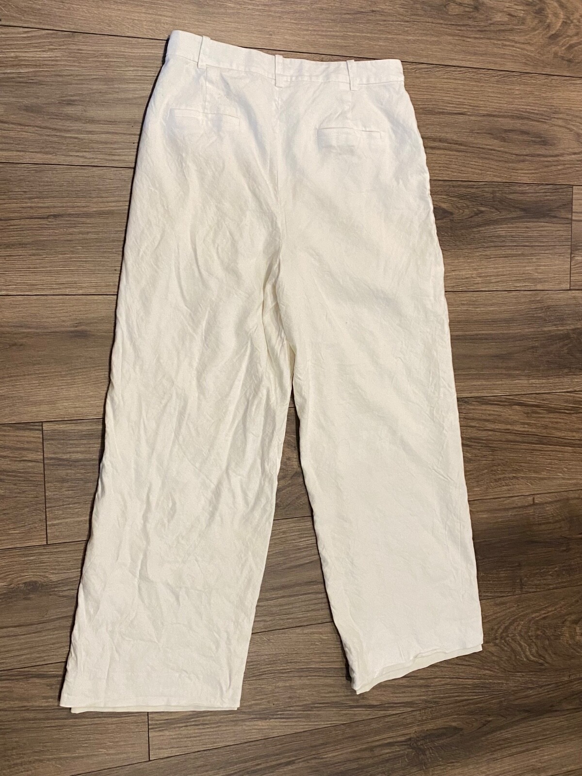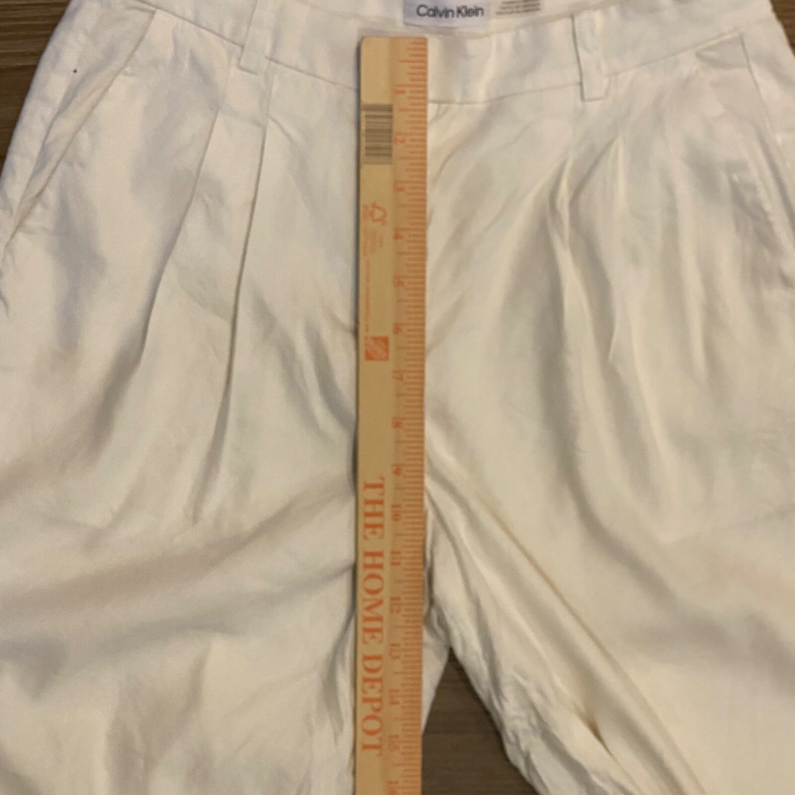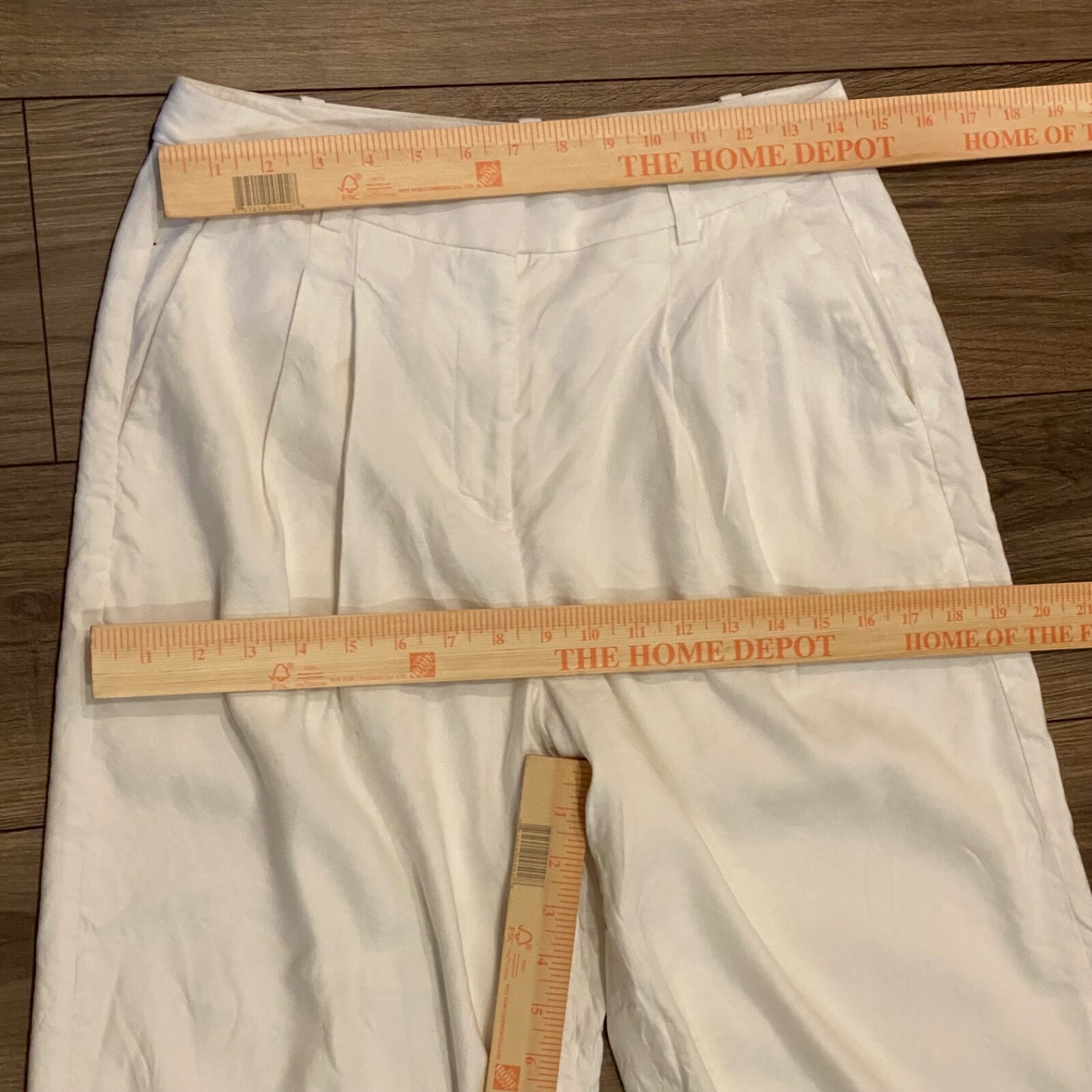 как выглядит Calvin Klein Wide Leg Women s White Pleated Linen Pants Size 4 фото