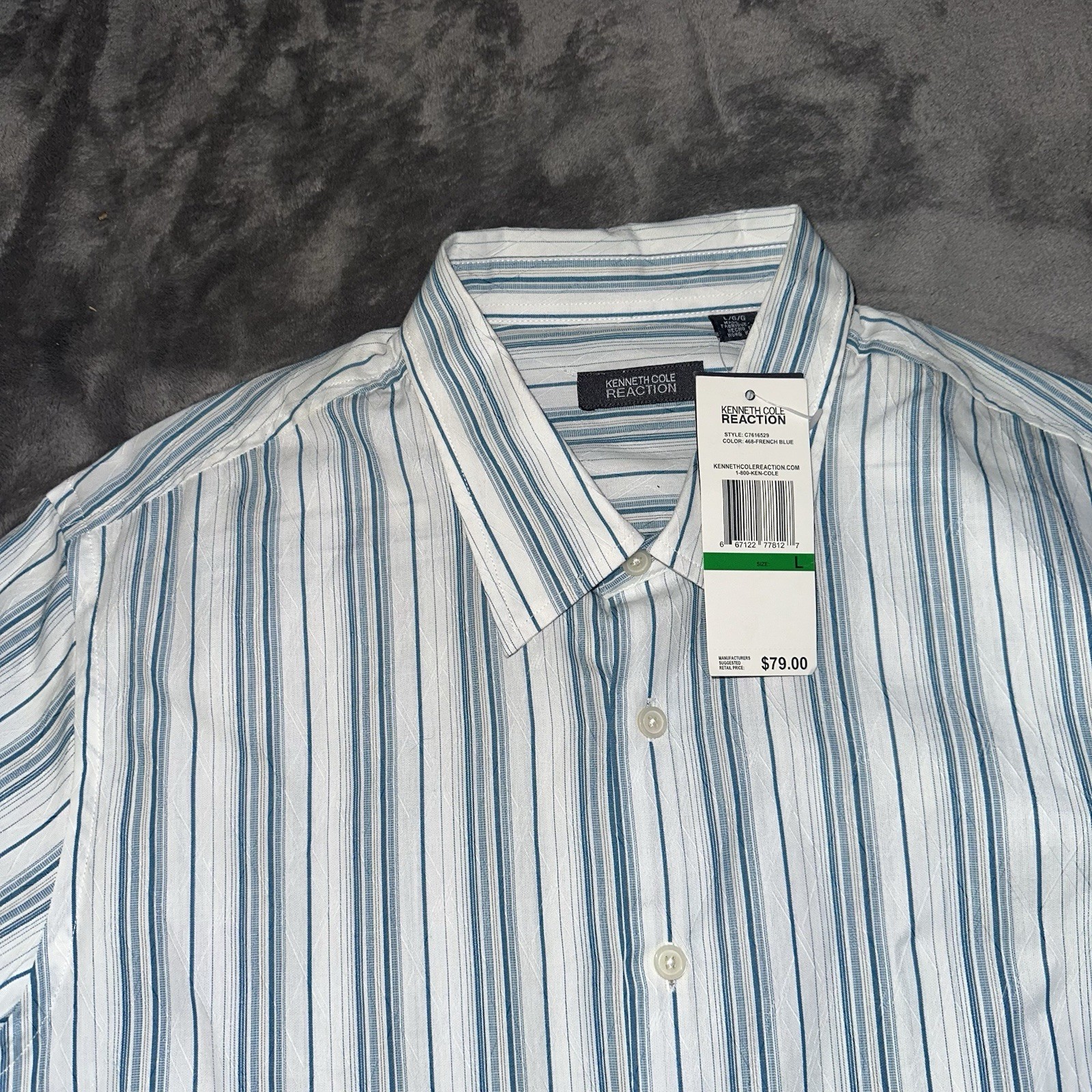 как выглядит NWT Kenneth Cole Reaction 468 French Blue Size Large L Striped Dress Shirt фото