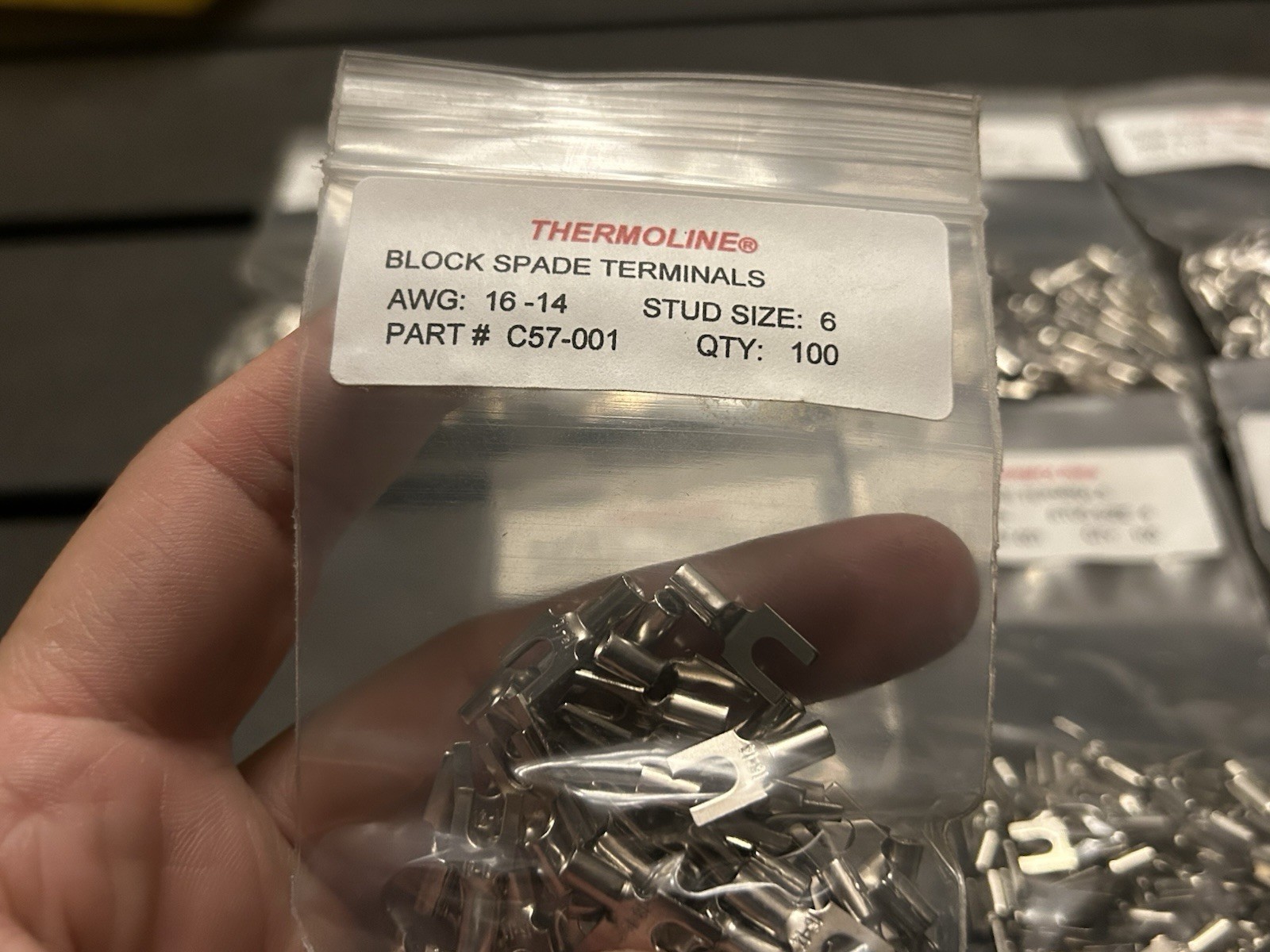 как выглядит 1000 16-14 AWG Block Spade Terminal Size 6 Fork Uninsulated Wire Connector фото
